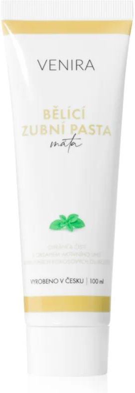 Venira Whitening Toothpaste, 100 ml, Pasty do zębów dla dzieci dla mężczyzn, Pasta do zębów jest przeznaczona do delikatnego wybielania zębów. Skutecznie usuwa niepożądane przebarwienia z zębów, a przy regularnym stosowaniu wynagradza bardziej promiennym uśmiechem. Właściwości: ma niską ścieralność gwarantuje delikatną pielęgnację szkliwa zębów chroni zęby przed próchnicą i osadem nazębnym ma łagodny skład ma łagodne działanie wybielające Skład: produkt wegański bez fluorku Sposób użycia: Stosuj co najmniej 2× dziennie. Pastę nanieś na szczoteczkę do zębów i wyczyść zęby łagodnymi, okrężnymi ruchami.