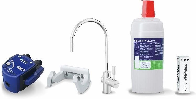 BRITA mypure Professional PURITY C1000 AC   system filtracji z kranem BRITA Zestaw składa się z: kranu BRITA ze wskaźnikiem wymiany wkładów LED filtra BRITA Purity C1000 AC z głowicą z bypassem 0% wężyków pozostałych elementów potrzebnych do instalacji (trójnik, uszczelki, instrukcja …