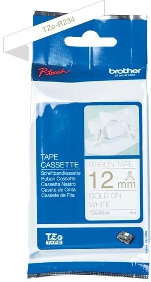 Brother TZe-R234 12 mm szerokości, 4 m długości Taśma wstążkowa do prezentów i rękodzieła Wysokiej jakości oryginalne taśma firmy Brother Zapewnia wyraźne i trwałe rezultaty Opis produktu  Brother TZe-R234 Magia taśmy wstążkowej Brother TZe-R234 pozwoli na personalizację prezentów, kartek czy rękodzieł. Dzięki TZe-R234 możesz cieszyć się szybkim i niezawodnym wydrukiem a także wyraźnymi, profesjonalnymi standardami drukowania. Kompatybilne z drukarkami P-touch, które zawierają logo TZ lub TZe. Kompatybilne z Brother PT-18R, PT-200, PT-210E, PT-220, PT-300, PT-310, PT-340, PT-340C, PT-350, PT-540, PT-540C, PT-550, PT-900, PT-1000, PT-1000F, PT-1000S, PT-1000TCM, PT-1000W, PT-1005F, PT-1005FB, PT-1005BTS, PT-1010, PT-1090, PT-1200, PT-1200P, PT-1230PC, PT-1250, PT-1250J, PT-1250S, PT-1260VP, PT-1280, PT-1280CB, PT-1280DT, PT-1280VP, PT-1290VP, PT-1750, PT-1800, PT-1800E, PT-1830VP, PT-1850, PT-1850CC, PT-1850VP, PT-1950VP, PT-2030VP, PT-2100VP, PT-2400, PT-2400E, PT-2420PC, PT-2430PC, PT-2450, PT-2450CC, PT-2450DX, PT-2460, PT-2470, PT-2480, PT-2500PC, PT-2700VP, PT-2730VP, PT-3600, PT-7100VP, PT-7500VP, PT-7600VP, PT-9200PC, PT-9200DX, PT-9400, PT-9500PC, PT-9600, PT-9700PC, PT-9800PCN, PT-D200, PT-D200VP, PT-D200WNVP, PT-D210, PT-D210VP, PT-D400VP, PT-D450VP, PT-D600VP, PT-D800W, PT-E100, PT-E100VP, PT-E300VP, PT-E500VP, PT-E550VP, PT-E550WVP, PT-H105, PT-H105WN, PT-H200, PT-H300, PT-H300LI, PT-H500, PT-H500LI, PT-P300BT, PT-P700, PT-P750W, PT-P900W, PT-P950NW, PT-RL-700S. Więcej informacji o produkcie Brother TZe-R234 Wykorzystaj taśmęTZe-R234 w połączeniu z drukarką etykiet P-touch, aby wyrazić życzenia na specjalne okazje. Magia taśmy wstążkowej pozwoli na personalizację prezentów, kartek czy rękodzieł. Dzięki TZe-R234 możesz cieszyć się szybkim i niezawodnym wydrukiem a także wyraźnymi, profesjonalnymi standardami drukowania. Piękny, złoty nadruk na białym tle taśmy TZe-R234 firmy Brother jest gwarancją wysokiej jakości taśmy wstążkowej. Luksusowe błyszczące wykończenie oraz brak kleju sprawiają, że taśma nadaje się idealnie do pakowania prezentów lub rękodzieła.