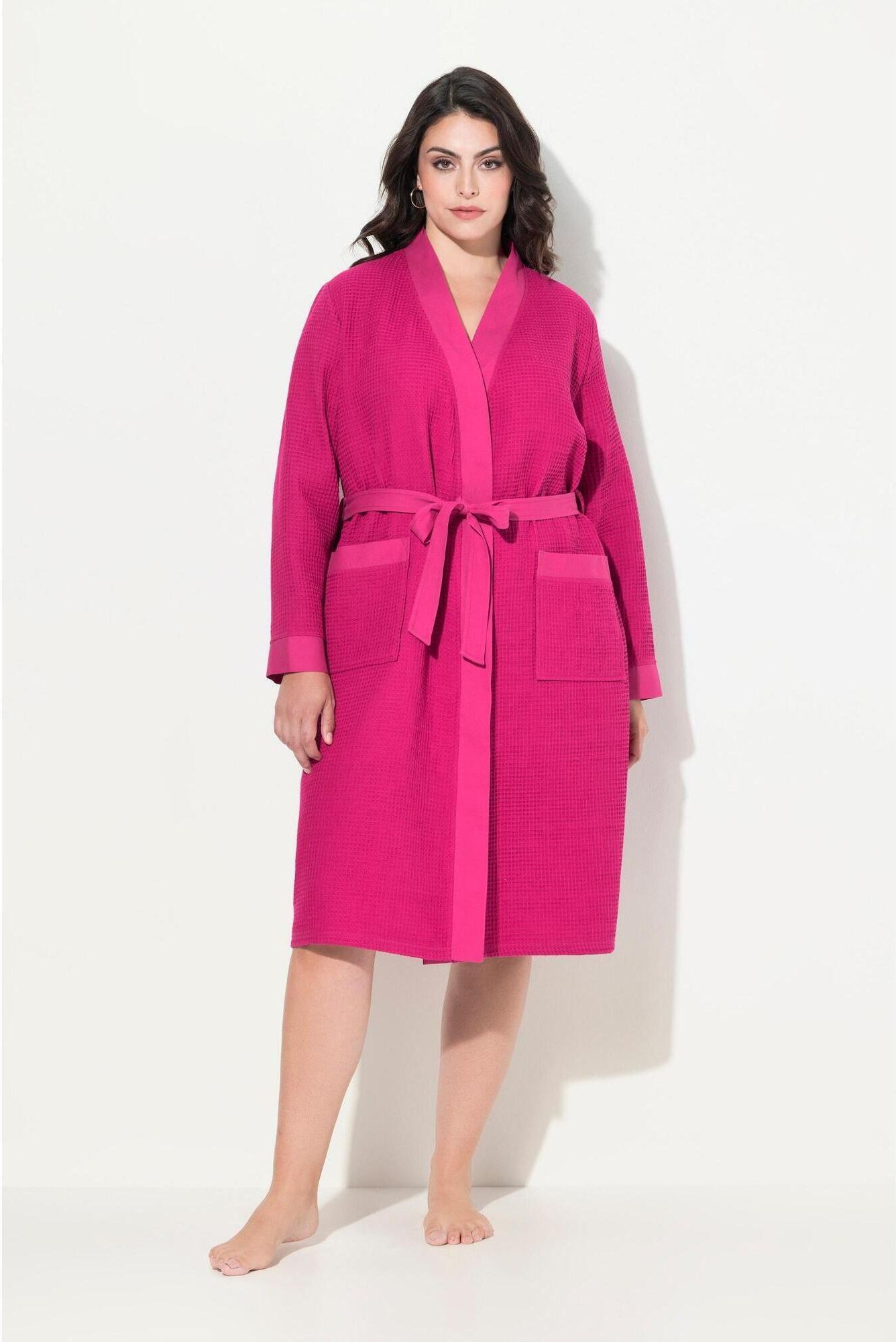 Damskie Szlafrok kołnierz szalowy pasek pika waflowa długi rękaw Kunów