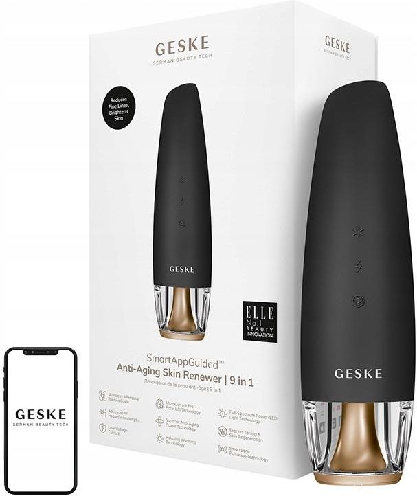 Geske Ujędrniający Masażer Do Twarzy 9w1 Aplikacja Lifting Regeneracja Producent: Geske Kod Produktu: GK000039GY01 Specyfikacja Producent: Geske Model: GK000039GY01 Wodoodporność: IPX7 Sposób ładowania: ładowanie magnetyczne Kolor: szary Ujędrniający masażer do twarzy 9w1 Geske (szary) Odkryj technologię, która odmieni Twoją codzienną rutynę pielęgnacyjną. Ujędrniający masażer do twarzy Geske łączy się z opartą na sztucznej inteligencji aplikacją, aby zapewnić Ci spersonalizowane zabiegi dopasowane do potrzeb Twojej skóry. Urządzenie skutecznie ujędrnia, wygładza i regeneruje cerę za pomocą takich technologii jak MicroCurrent Pro Face-Lift, Full-Spectrum Power-LED Light, Advanced RF Heated Wavelengths czy SmartSonic Pulsation. Wodoodporna konstrukcja (IPX7), silikon klasy medycznej i możliwość korzystania z różnych kolorów światła LED pozwalają na bezpieczną i skuteczną pielęgnację bez wychodzenia z domu. Magnetyczne ładowanie dodatkowo zwiększa wygodę użytkowania. Dla najlepszych rezultatów używaj urządzenia wraz z dedykowanym żelem GESKE Hydrating MicroCurrent Gel z kolagenem i kwasem hialuronowym. Aplikacja GESKE Pobierz darmową aplikację GESKE Beauty Tech, aby maksymalnie wykorzystać funkcjonalność masażera. AI analizuje stan Twojej skóry, dobiera rytuały pielęgnacyjne i prowadzi Cię przez każdy etap zabiegu za pomocą filmów instruktażowych przygotowanych we współpracy z dermatologami. Śledź postępy, poznawaj potrzeby swojej skóry i ciesz się rutyną, która naprawdę działa! Lifting i regeneracja skóry Urządzenie wykorzystuje MicroCurrent Pro Face-Lift Technology oraz Low-Voltage Current, aby delikatnie, ale skutecznie pobudzać mięśnie twarzy. W efekcie skóra staje się bardziej napięta, a owal twarzy wyraźniej zarysowany. Express Toning & Skin Regeneration dodatkowo wspiera odbudowę skóry i poprawia jej strukturę, co sprawia, że cera zyskuje zdrowy blask i młodzieńczy wygląd. Ciepło i fale radiowe Teraz możesz zregenerować cerę po stresującym dniu lub przygotować ją na ważne wydarzenie. Technologie Advanced RF Heated Wavelengths i Relaxing Warming Technology oferują relaksujące ciepło i głęboką stymulację, która poprawia mikrokrążenie, wspomaga wchłanianie składników aktywnych i redukuje napięcia skóry. Terapia światłem LED Dzięki Full-Spectrum Power-LED Light Technology urządzenie oferuje aż osiem trybów światła, z których każdy ma inne, wyspecjalizowane działanie. Białe światło ujędrnia, redukuje opuchliznę i wspomaga regenerację. Czerwone intensywnie pobudza procesy naprawcze, redukując zmarszczki i poprawiając elastyczność skóry. Światło niebieskie działa antybakteryjnie i reguluje produkcję sebum, a fioletowe wspomaga detoksykację i rozświetla cerę. Żółte koi podrażnienia, zmniejsza zaczerwienienia i usuwa toksyny. Natomiast pomarańczowe działa jak zastrzyk energii, rozświetlając skórę po ekspozycji na słońce. Światło cyjanowe łagodzi stany zapalne i wspiera naturalne procesy gojenia, a zielone zmniejsza przebarwienia i wyrównuje koloryt. Taka różnorodność sprawia, że urządzenie sprawdzi się zarówno przy pielęgnacji cery trądzikowej, naczynkowej, jak i dojrzałej.