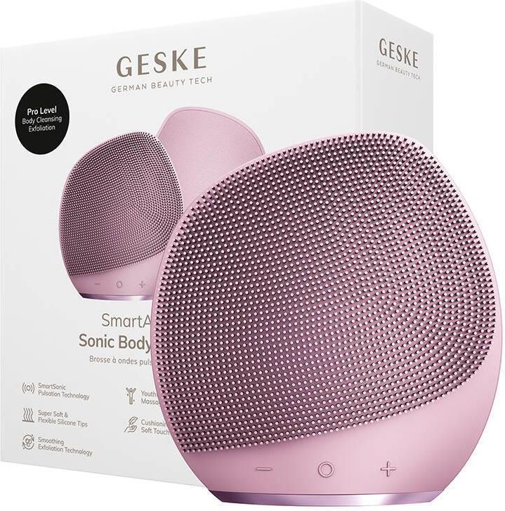 Soniczna szczoteczka do ciała Brush&Intensive 7w1 (różowa) Zapewnij swojemu ciału luksusową pielęgnację z rewolucyjną szczotką soniczną do ciała Brush&Intensive 7w1 od GESKE, która przekształci Twoją kąpiel w prawdziwe domowe SPA. Wspierana aplikacją z algorytmem AI otworzy przed Tobą drzwi do świata profesjonalnych zabiegów, rekomendowanych przez ekspertów specjalnie dla Ciebie i potrzeb Twojej skóry. Dzięki innowacyjnym funkcjom urządzenie gwarantuje kompleksową pielęgnację, sprawiając, że Twoja skóra rozpromienieje zdrowiem i młodością. Pielęgnacja i odnowa w jednym Dwustronna konstrukcja szczotki łączy w sobie powierzchnię do intensywnego złuszczania oraz ultramiękkie silikonowe wypustki, zapewniając skórze zarówno głębokie oczyszczenie, jak i delikatny masaż. Pozwól sobie na chwilę relaksu, który odżywi Twoje ciało, nadając mu wyjątkową gładkość i młodzieńczy blask. Technologia, która inspiruje Zastosowanie SmartSonic Pulsations ożywia skórę, stymulując jej odnowę na poziomie komórkowym. Ta technologia nie tylko odmładza, ale również dodaje skórze energii, sprawiając, że każdego dnia możesz cieszyć się jej zdrowszym wyglądem. Rozwiązania oparte na algorytmach AI Pobierz aplikację GESKE i odkryj personalizowane rekomendacje oraz porady, które pomogą Ci osiągnąć Twoje cele pielęgnacyjne. Dzięki innowacyjnej technologii AI, aplikacja analizuje stan Twojej skóry, proponując zabiegi idealnie dopasowane do jej potrzeb. Wszechstronność w służbie piękna Nie ograniczaj się tylko do zabiegów kąpielowych — szczotka soniczna 7 w 1 to narzędzie, które dba o każdy centymetr Twojego ciała, aktywnie walcząc z niedoskonałościami, tonując i poprawiając teksturę skóry. Zadbaj o swoje ciało z troską, na jaką zasługuje, korzystając z nagrodzonego przez magazyn ELLE urządzenia i zachwycaj promiennym wyglądem! W zestawie Soniczna szczoteczka do ciała Brush&Intensive 7w1 Magnetyczna ładowarka Producent Geske Model GK000706PK01 Kolor Różowy Materiał Silikon Sposób ładowania Magnetyczne