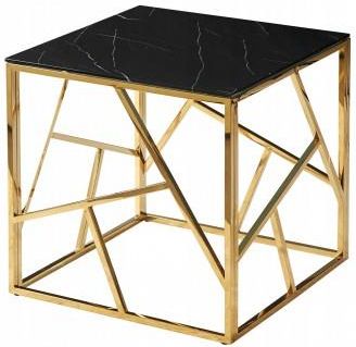 Stolik kawowy szklany z efektem marmuruŁawa Escada B II od Signal Meble to nowoczesny mebel w stylu glamour, który nada każdemu wnętrzu klasy i elegancji. Szklana ława będzie idealnym dopełnieniem stylowego salonu. Blat stolika wykonany jest z tafli hartowanego szkła, pokrytego modnym motywem w kolorze czarnego marmuru. Dzięki temu jest niezwykle wytrzymały i odporny na wysokie temperatury. Stelaż to niebanalna, stalowa konstrukcja w kolorze złotym, zapewniająca stabilność mebla. Połączenie bieli ze złotem wpisze się w niejedno wnętrze, dodając mu klasy i błysku glamour.Materiał: szkło hartowane/stal nierdzewnaKolor: czarny ,efekt marmuru/złotyWymiary:wysokość: 55 cmszerokość: 55 cmgłębokość: 55 cmgrubość blatu: 8 mmmaksymalne obciążenie: 40 kgCechy produktu:nowoczesna ława ze szkła hartowanegostabilna podstawa ze stali nierdzewnejmodna forma w stylu glamourdo samodzielnego montażu