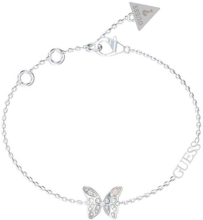 Damska bransoletka GUESS Chrysalis JUBB04110JWRHL Biżuteria - Parametry: Materiał - STAL NIERDZEWNA, KRYSZTAŁKI Kolor - SREBRNY Zapięcie - KARABIŃCZYK Wykończenie - ZAWIESZKA z motylem w cyrkonie. Biżuteria - Wymiary: Długość bransoletki - 14,5-18cm Przy zakupie otrzymujesz: Oryginalną biżuterię GUESS, Pudełko i torebkę GUESS, Woreczek na biżuterię GUESS, Certyfikat autentyczności.