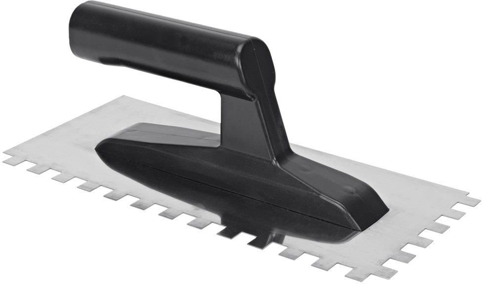 Paca do nakładania zaprawy, masy klejącej, kleju Ostrze ze stali nierdzewnej Wymiary: Dł:270xSzer:130 mm Rozmiar zębów 10x10 mm