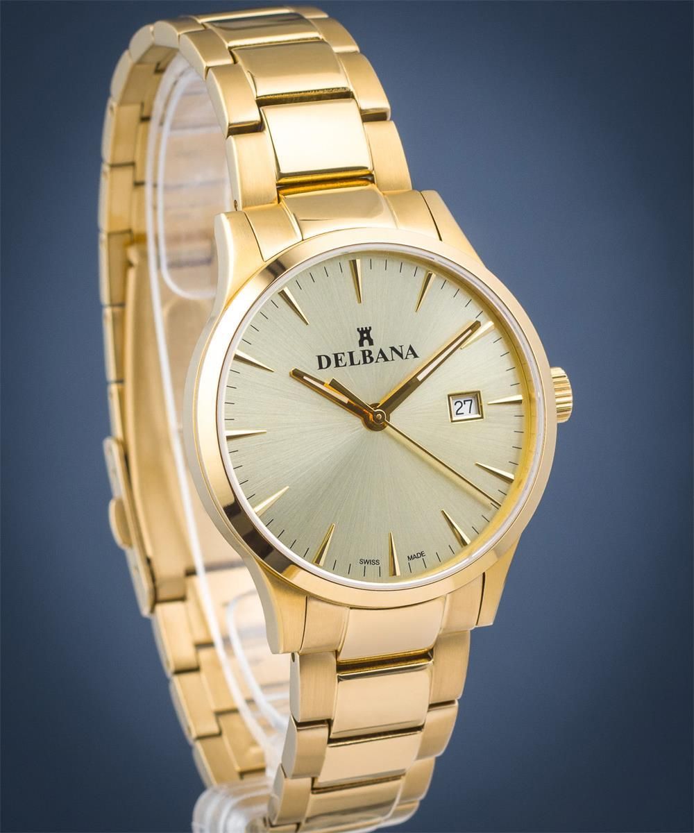 Delbana 42701.746.6.021 Zegarki to nie tylko funkcjonalne akcesoria, ale również elegancki element ubioru, który potrafi dopełnić każdą stylizację. W dzisiejszych czasach wybór idealnego modelu to nie lada wyzwanie, biorąc pod uwagę różnorodność dostępnych na rynku zegarków, które łączą w sobie zarówno technologię, jak i modowy design. Przedstawiamy zegarek męski Delbana 42701.746.6.021, który może stać się nie tylko praktycznym narzędziem do odmierzania czasu, ale i stylowym dodatkiem do Twojej garderoby. Typ zegarka Model ten to zegarek analogowy, co oznacza, że czas jest wyświetlany za pomocą wskazówek na tarczy. To klasyczne rozwiązanie cieszy się niesłabnącą popularnością, ponieważ łączy w sobie elegancję i tradycję. Dzięki zastosowaniu mechanizmu kwarcowego, zegarek gwarantuje precyzyjne odmierzanie czasu, co czyni go niezawodnym towarzyszem codziennych obowiązków. Mechanizm Jednym z kluczowych atutów tego zegarka jest jego mechanizm kwarcowy Ronda 515. Mechanizmy kwarcowe są znane z niezwykłej precyzji oraz niskiego zużycia energii. Dzięki temu zegarek działa przez długi czas bez potrzeby wymiany baterii. Dodatkowo, oznaczenie "Swiss made" wskazuje, że produkt został zaprojektowany i wyprodukowany w Szwajcarii, co podnosi jego prestiż oraz gwarantuje wysoką jakość wykonania. Materiał koperty Koperta zegarka wykonana jest ze stali nierdzewnej, co zapewnia jej trwałość oraz odporność na uszkodzenia mechaniczne. Złoty kolor koperty dodaje elegancji i szyku, dzięki czemu zegarek doskonale sprawdzi się zarówno w codziennych, jak i bardziej formalnych stylizacjach. Okrąły kształt koperty sprawia, że model ten jest uniwersalny i idealnie dopasowuje się do różnych kształtów nadgarstka. Szkiełko W modelu Delbana 42701.746.6.021 zastosowano szafirowe szkło, które charakteryzuje się niezwykłą odpornością na zarysowania oraz doskonałą przejrzystością. To istotny element, który ma znaczący wpływ na trwałość zegarka. Szafirowe szkło nie tylko chroni mechanizm przed uszkodzeniami, ale również sprawia, że tarcza zegarka prezentuje się wyjątkowo estetycznie. Pasek lub bransoleta Zegarek jest wyposażony w stalową bransoletę w złotym kolorze, co doskonale koresponduje z resztą elementów designu. Stalowy pasek jest nie tylko wytrzymały, ale także zapewnia wygodę noszenia. Dzięki 20 mm szerokości paska oraz solidnemu zapięciu, zegarek dobrze trzyma się nadgarstka, co sprawia, że jest komfortowy w codziennym użytkowaniu. Wodoszczelność Model ten posiada wodoszczelność na poziomie 50 metrów, co oznacza, że jest odporny na zachlapania oraz krótkotrwałe zanurzenie w wodzie. To istotna cecha dla osób aktywnych, które nie chcą rezygnować z noszenia swojego zegarka nawet podczas codziennych aktywności. Wodoszczelność na tym poziomie sprawia, że zegarek sprawdzi się w różnych warunkach, oferując pewność i komfort użytkowania. Kluczowe cechy zegarka Oto najważniejsze cechy, które wyróżniają zegarek męski Delbana 42701.746.6.021: mechanizm kwarcowy Ronda 515: gwarantuje precyzyjne odmierzanie czasu, wodoszczelność 50m: odporny na zachlapania i krótkotrwałe zanurzenie, szafirowe szkło: wysoka odporność na zarysowania oraz doskonała przejrzystość, stalowa bransoleta: wygodna w noszeniu, elegancka i odporna na uszkodzenia, datownik: przydatna funkcja do monitorowania daty. Zegarek Delbana 42701.746.6.021 to doskonały wybór dla osób, które poszukują eleganckiego, funkcjonalnego i trwałego akcesorium. Jego klasyczny design oraz wysoka jakość wykonania sprawiają, że jest to propozycja, która z pewnością spełni oczekiwania nawet najbardziej wymagających użytkowników.