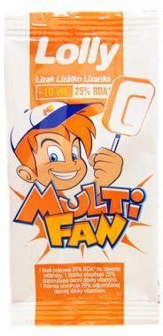 Lizaki Multifan o smaku pomarańczowym w opakowaniu typu box. Opakowanie zawiera 50 sztuk. Nasz wyjątkowy lizak MULTIFAN stworzony został z myślą o zdrowiu, bezpieczeństwie i zadowoleniu najmłodszych. Jest całkowicie przyjazny dla szkliwa oraz dla śluzówki jamy ustnej nawet po rozgryzieniu, ze względu na swoją sprasowaną, pudrową oraz bezcukrową formułę. Papierowy patyczek umieszczony pod odpowiednim kątem jest bezpieczny w czasie zabawy, eliminując ryzyko zranienia, dopchnięcia czy zadławienia. Całość, łącznie z patyczkiem, zapakowana jest w saszetkę z folii dwuwarstwowej zapewniającą sterylność produktu. MULTIFAN to pierwszy w Polsce preparat wielowitaminowy w postaci lizaka, zawierający nie tylko 10 podstawowych witamin w ilościach stanowiących ok. 25% rekomendowanego dziennego ich spożycia, ale jest również bardzo smaczny i aromatyczny dzięki zawartości suszu owocowego – malinowego, pomarańczowego i z owoców leśnych. Rekomendowany jako uzupełnienie podstawowej diety dla dzieci: w okresie intensywnego wzrostu; w okresie jesienno-zimowo-wiosennym; podczas rekonwalescencji po przebytych infekcjach bakteryjno-wirusowych; w okresach zmęczenia fizycznego i narażenia na stres. Dzięki temu, że cukier zastąpiony jest sorbitolem o bardzo niskim indeksie glikemicznym (IG:4) z powodzeniem polecany jest również dla dzieci z cukrzycą. Lizak MULTIFAN otrzymał rekomendację od PortalDentystyczny.pl Składniki sorbitol (nośnik); susz z owoców pomarańczy 3%; witaminy; aromat; cytrynian sodu (regulator kwasowości); kwas cytrynowy; sole magnezowe kwasów tłuszczowych (substancja przeciwzbrylająca), tłuszcz roślinny. Zawartość witamin w 100g produktu: witamina C 400mg (500%)*, niacyna 80mg (500%)*, witamina E 60mg (500%)*, kwas pantotenowy 30mg (500%)*, witamina B6 7mg (500%)*, witamina B2 7mg (500%)*, witamina B1 5,5mg (500%)*, kwas foliowy 1000mcg (500%)*, biotyna 250mcg (500%)*, witamina B12 12,5mcg (500%)*. * RWS - Referencyjnej Wartości Spożycia Wartość odżywcza w 100g produktu: wartość energetyczna 1041kJ//249kcal, tłuszcz 0,8g (nasyone kwast tłuszczowe 0,8g), weglowodany 97g (poliole 93g, cukry 0g), błonnik 0g, białko 0g, sól 0,44g. Właściwości Właściwości niektórych składników Witamina C - pomaga w utrzymaniu prawidłowego funkcjonowania układu odpornościowego, wspomaga prawidłową produkcję kolagenu w celu zapewnienia prawidłowego funkcjonowania naczyń krwionośnych, kości, dziąseł, skóry, zębów i chrząstek, wspiera prawidłowe funkcjonowanie układu nerwowego Niacyna - przyczynia się do utrzymania prawidłowego metabolizmu energetycznego oraz pomaga w prawidłowym funkcjonowaniu układu nerwowego i funkcji psychologicznych, przyczynia się do zmniejszenia uczucia zmęczenia i znużenia. Witamina E - pomaga w ochronie komórek przed stresem oksydacyjnym Biotyna - pomaga zachować zdrowe włosy i skórę, pomaga w prawidłowym funkcjonowaniu układu nerwowego, stymulacja możliwości pracy umysłowej, zalecana w okresach przedłużonego zmęczenia i w trakcie rekonwalescencji po załamaniach nerwowych, Przeciwwskazania Nadwrażliwość na którykolwiek ze składników preparatu. W okresie ciąży i karmienia piersią przed zastosowaniem należy skonsultować się z lekarzem lub farmaceutą. Ważne informacje Nie należy przekraczać zalecanej porcji do spożycia w ciągu dnia. Suplement diety nie może być stosowany jako substytut (zamiennik) zróżnicowanej diety ani aktywnego trybu życia. Utrzymanie prawidłowego stanu zdrowia wymaga zrównoważonego i zróżnicowanego odżywiania i prowadzenia zdrowego trybu życia. Istnieje wiele czynników ryzyka choroby. Zmiana jednego z tych czynników ryzyka może wywierać korzystny wpływ lub nie wywierać go. Przechowywać w sposób niedostępny dla małych dzieci w temperaturze pokojowej. Zalecane spożycie Zalecane dzienne spożycie: 1 lizak Dostawa Zamówienia wysyłamy do godziny 10 rano. Zamówienia złożone po tej godzinie ,wysyłamy dnia następnego.