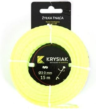 Żyłka tnąca skręcana firmy Krysiak przeznaczona jest głównie do użytku przydomowego oraz do pracy w ogrodzie lub na działce. Żyłka znajdzie zastosowanie głównie przy pielęgnacji trawników oraz wykaszaniu wysokiej trawy i chwastów o miękkich łodygach. Średnica 3.0 mm skrętna TWIST 15 m żyłki zapewnia jej dużą wytrzymałość oraz umożliwia równą i wydajną pracę, zarówno elektrycznych, jak i spalinowych podkaszarek oraz kos (również mniejszej mocy).