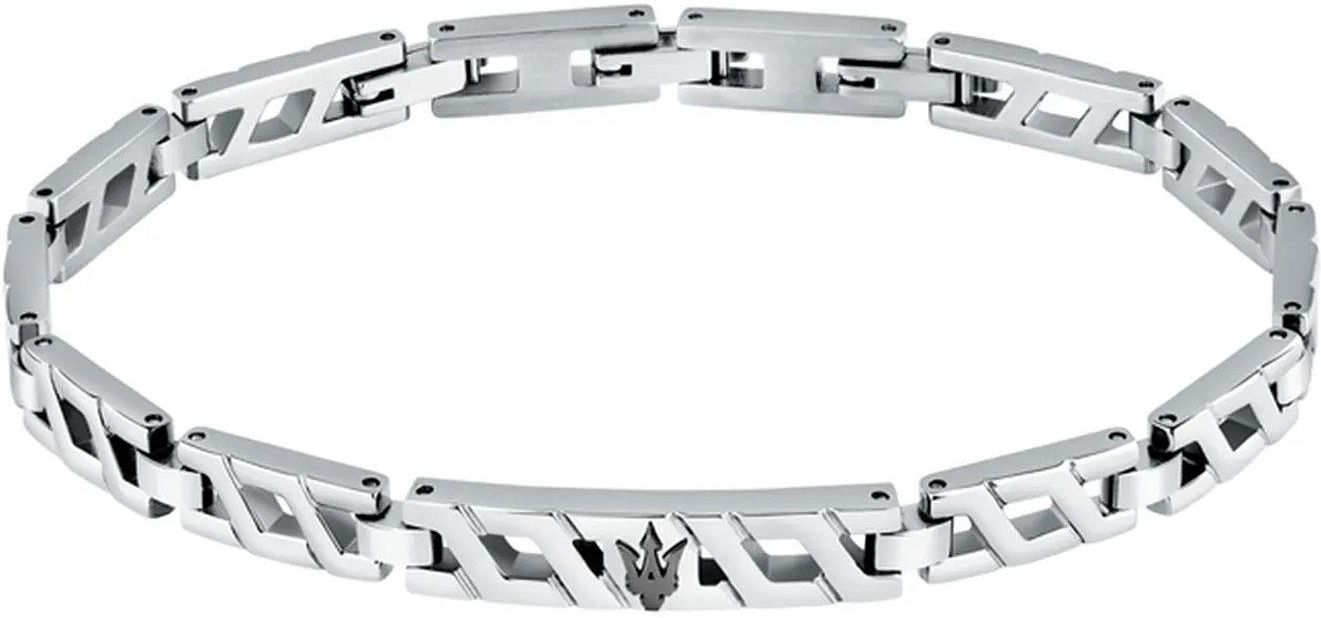 Biżuteria - Parametry: Materiał - STAL NIERDZEWNA Kolor - SREBRNY Zapięcie - ZATRZASK Biżuteria - Wymiary: Długość bransoletki- 21cm Przy zakupie otrzymujesz: Oryginalną biżuterię MASERATI, Oryginalne pudełko MASERATI, Gwarancja producenta.