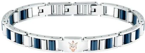 Biżuteria - Parametry: Materiał - STAL NIERDZEWNA Kolor - SREBRNO-NIEBIESKI Zapięcie - ZATRZASK Biżuteria - Wymiary: Długość bransoletki- 22cm Przy zakupie otrzymujesz: Oryginalną biżuterię MASERATI, Oryginalne pudełko MASERATI, Gwarancja producenta.
