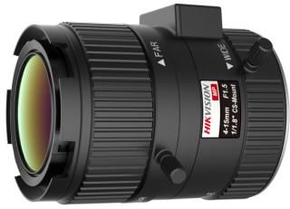 Obiektyw megapikselowy Hikvision 1/1,8” (Φ9mm) Rozdzielczość optyczna: 3Mpix Przysłona automatyczna sterowana prądowo (DC) Zmienna ogniskowa 4-15mm Apertura (F): 1.5~C Mocowanie obiektywu: CS Kąt widzenia w poziomie: dla przetworników 1/1,8”: 101.9~31.3° dla przetworników 1/2”: 99.2°~30.6° Minimalna odległość obiektu: 0.1 m Waga: 102.4g Wymiary: Φ50.2x73.8mm