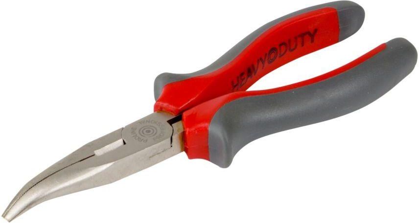 Szczypce półokrągłe wygięte 160 mm, Proline 28771 Kute z wysokogatunkowej stali narzędziowej. Hartowane. Satynowane. Szczęki półokrągłe rowkowane, wygięte ułatwiają dostęp do małych przestrzeni. Nasadki ergonomiczne z wysokogatunkowego tworzywa. Boczna krawędź tnąca. Rozmiar 160 mm. Kod produktu: 28771 EAN: 5903755287717