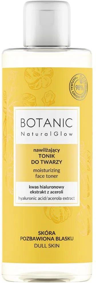 Botanic nawilżający tonik do twarzyBOTANIC Natural Glow to kosmetyki przywracające naturalny blask Twojej skórze. Technolodzy BOTANIC, starając się sprostać potrzebie odzyskania naturalnego piękna, kompleksowo połączyli składniki roślinne z innowacyjnymi składnikami aktywnymi, pozwalając cieszyć się promienną cerą na co dzień.Nawilżający tonik do twarzyReceptura toniku odświeży Twoją skórę i przygotuje ją do dalszych zabiegów pielęgnacyjnych. Dzięki połączeniu ekstraktu z aceroli wraz z kwasem hialuronowym, nawilża i łagodzi skórę, przynosząc uczucie ukojenia. Po użyciu Twoja skóra wygląda świeżo i zdrowo.Sposób użyciaPrzetrzyj skórę płatkiem kosmetycznym nasączonym tonikiem. Stosuj rano i wieczorem.Produkt przebadany dermatologicznie98% składników pochodzenia naturalnegoZmiana barwy produktu uwarunkowana jest wysoką zawartością składników pochodzenia naturalnego.Działanie składników naturalnych i aktywnych KWAS HIALURONOWY intensywnie nawilża, poprawia jędrność i elastyczność. EKSTRAKT Z ACEROLI bogaty w witaminę C, wygładza i koi skórę.