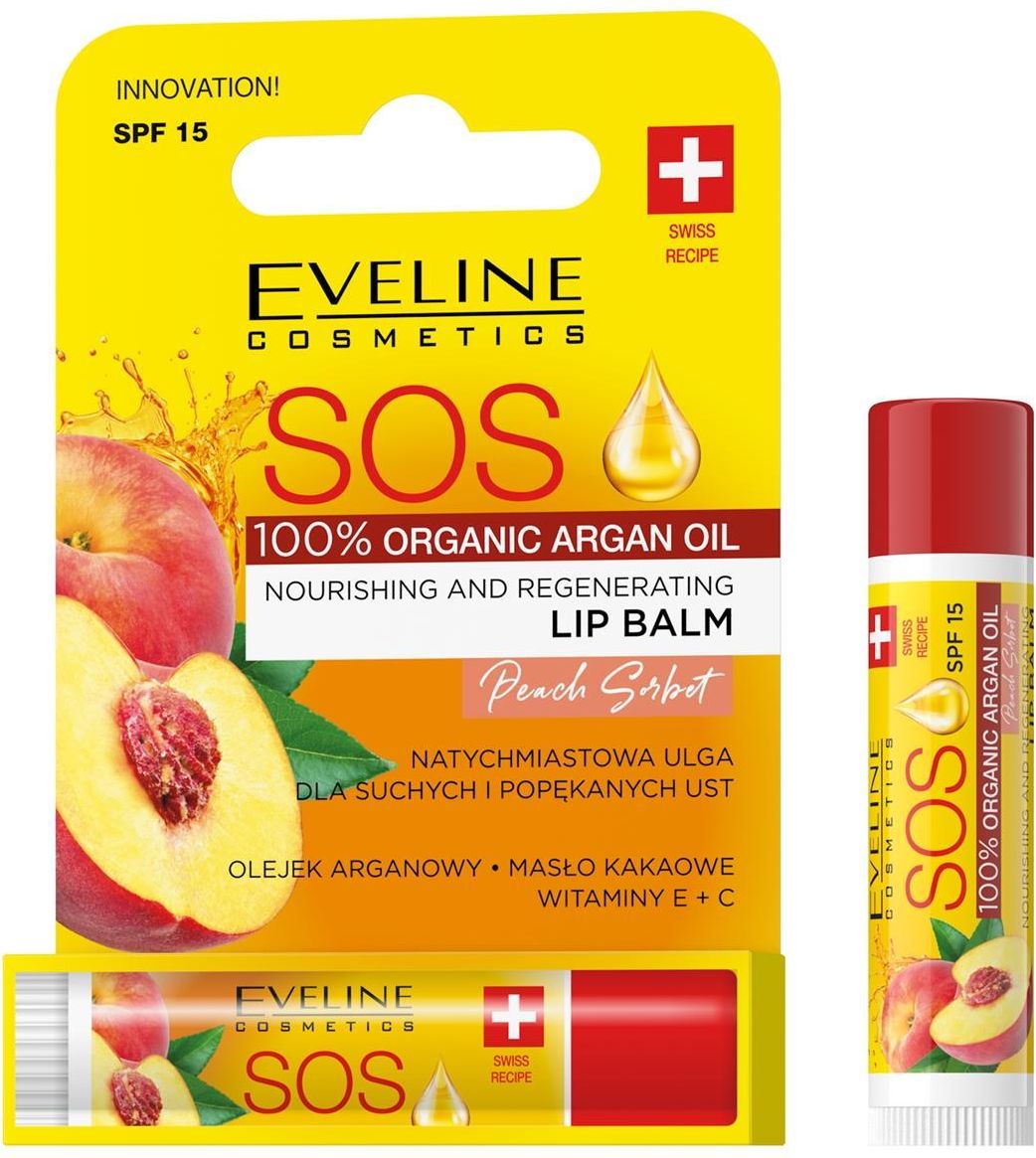 Eveline Kolorowka Sos Lip Balm 100% Organic Argan Oil Balsam Do Ust Odżywczy Regenerujący Peach Sorbet 1szt. Kwidzyn