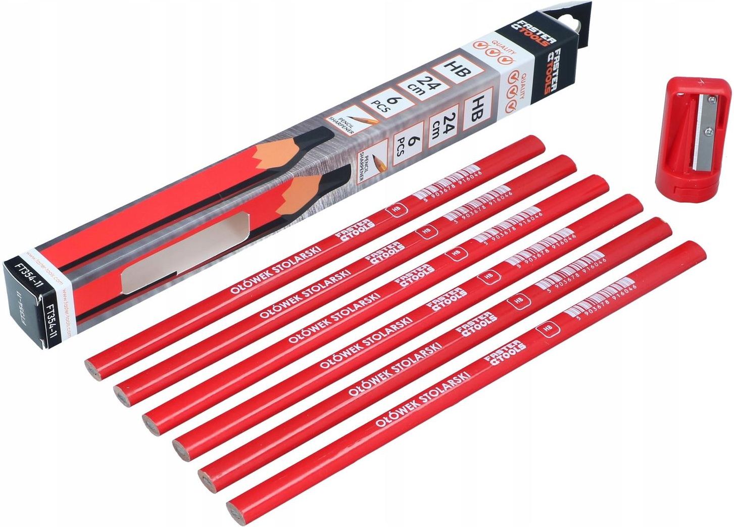 Faster Tools Ołówek Stolarski Hb 24Cm 6Szt. Temperówka Kwidzyn