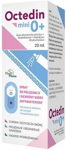Dla każdej mamy, pierwsze dni po powrocie ze szpitala z dzieckiem, są niezwykłym przeżyciem i wspaniałym wyzwaniem. Pielęgnacja skóry niemowlaka zdecydowanie różni się od tej, jakiej wymaga skóra osoby dorosłej. Jego bariera skórna jest cienka, a przez to podatna na podrażnienia i drobne zadrapania.Jednym z najbardziej wyjątkowych miejsce, które należy pielęgnować jest kikut pępowinowy. Zasługuje na poświęcenie czasu, gdyż wymaga oczyszczania i ochrony. Warto również wspomóc regenerację takiej okolicy, aby uległa ona jak najszybszemu zasklepieniu. Opis: Octedin mini 0+ to płyn do pielęgnacji i przemywania skóry.Produkt zawiera wyciąg z aloesu i pantenol, które pielęgnują i regenerują naskórek, a także koją i łagodzą podrażnienia. Pantenol dodatkowo chroni i utrzymuje odpowiedni stopień nawilżenia skóry. Oktenidyna, zawarta w preparacie, wykazuje działanie antybakteryjne, co pomaga zachować czystość. Płyn Octedin mini 0+ wspomaga pielęgnację naskórka i pępka u noworodków. Produkt nie zawiera alkoholu, nie szczypie i nie podrażnia skóry. Skład: Aqua, Propylene Glycol, Panthenol, Aloe Arborescens Leaf Extract, Extract, Ethylhexylglycerin, Octenidine HCl. Sposób użycia: Octedin mini 0+ należy stosować bezpośrednio na pożądane partie skóry w postaci nierozcieńczonej.Pokryć obszar całkowicie i równomiernie, pozostawić na około 1 minutę. Nie spłukiwać!