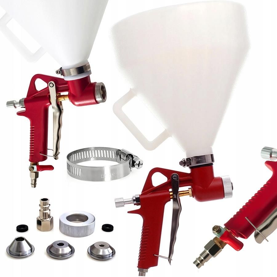 Pistolet do malowania, tynkowania, bielenia TA128 Uniwersalny pistolet pneumatyczny do malowania, tynkowania, gipsowania oraz piaskowania. Pistolet przeznaczony jest do malowania farbą emulsyjną, farbami klejowymi, do bielenia wapnem jak również do nanoszenia tynków akrylowych na docieplenia. Idealnie nadaje się do nanoszenia tynków, gładzi gipsowych, można nim robić fakturę czyli tzw. "baranka" na ścianie. Skład zestawu Pistolet do malowania tynkowania TA128 + 3 końcówki