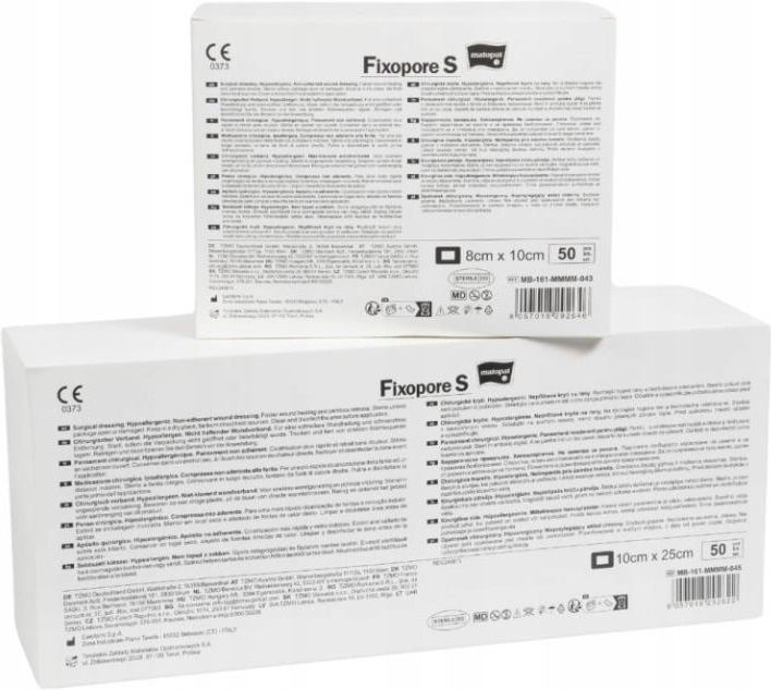 Matopat, jałowy opatrunek FIXOPORE S włókninowy z wkładem chłonnym stosuje się do opatrywania ran pooperacyjnych, mniejszych ran, skaleczeń i otarć skóry. 1 sztuka w rozmiarze 5 cm x 7.2 cm Matopat, jałowy opatrunek FIXOPORE S włókninowy z wkładem chłonnym stosuje się do opatrywania ran pooperacyjnych, mniejszych ran, skaleczeń i otarć skóry. 1 sztuka w rozmiarze 5 cm x 7.2 cm Opatrunek jest paroprzepuszczalny, wysoce chłonny, łatwy w aplikacji, nie odkleja się od skóry. Jałowy opatrunek chirurgiczny włókninowy z wkładem chłonnym FIXOPORE S przeznaczony jest do użytku profesjonalnego i domowego. Służy do opatrywania ran pooperacyjnych, otarć i skaleczeń oraz do mocowania i ochrony kaniul. Podłoże plastra stanowi biała, porowata i elastyczna włóknina, dzięki której skóra może swobodnie oddychać. Przylepiec nie wykazuje działania drażniącego i uczulającego na skórę. FIXOPORE S cechuje się wysoką paroprzepuszczalnością. Jest przenikalny dla promieni rentgenowskich. Centralnie położony wkład chłonny posiada wysokie właściwości absorpcyjne, a jego zewnętrzna warstwa zabezpieczona jest mikrosiateczką, która zapobiega przywieraniu opatrunku do powierzchni rany i szwów. Zaokrąglone brzegi chronią opatrunek przed odklejaniem się ze skóry. Szeroka zakładka papieru ochronnego umożliwia łatwą aplikację opatrunku nawet w rękawiczkach. Uwaga! Opatrunek występuje w różnych wielkościach. Zdjęcie opakowań jest przykładowe. Plaster z opatrunkiem Fixopore S w rozmiarze 5cm x 7.2cm - indywidualnie opakowany, jałowy Uwagi i środki ostrożności:Wyrób jednorazowego użytku. Wyrób sterylny; nie używać powtórnie; nie resterylizować; nie używać, jeśli opakowanie jest uszkodzone; wyrób jałowy wewnątrz opakowania indywidualnego. To jest wyrób medyczny, używaj zgodnie z etykietą bądź instrukcją obsługi dołączoną do opakowania.