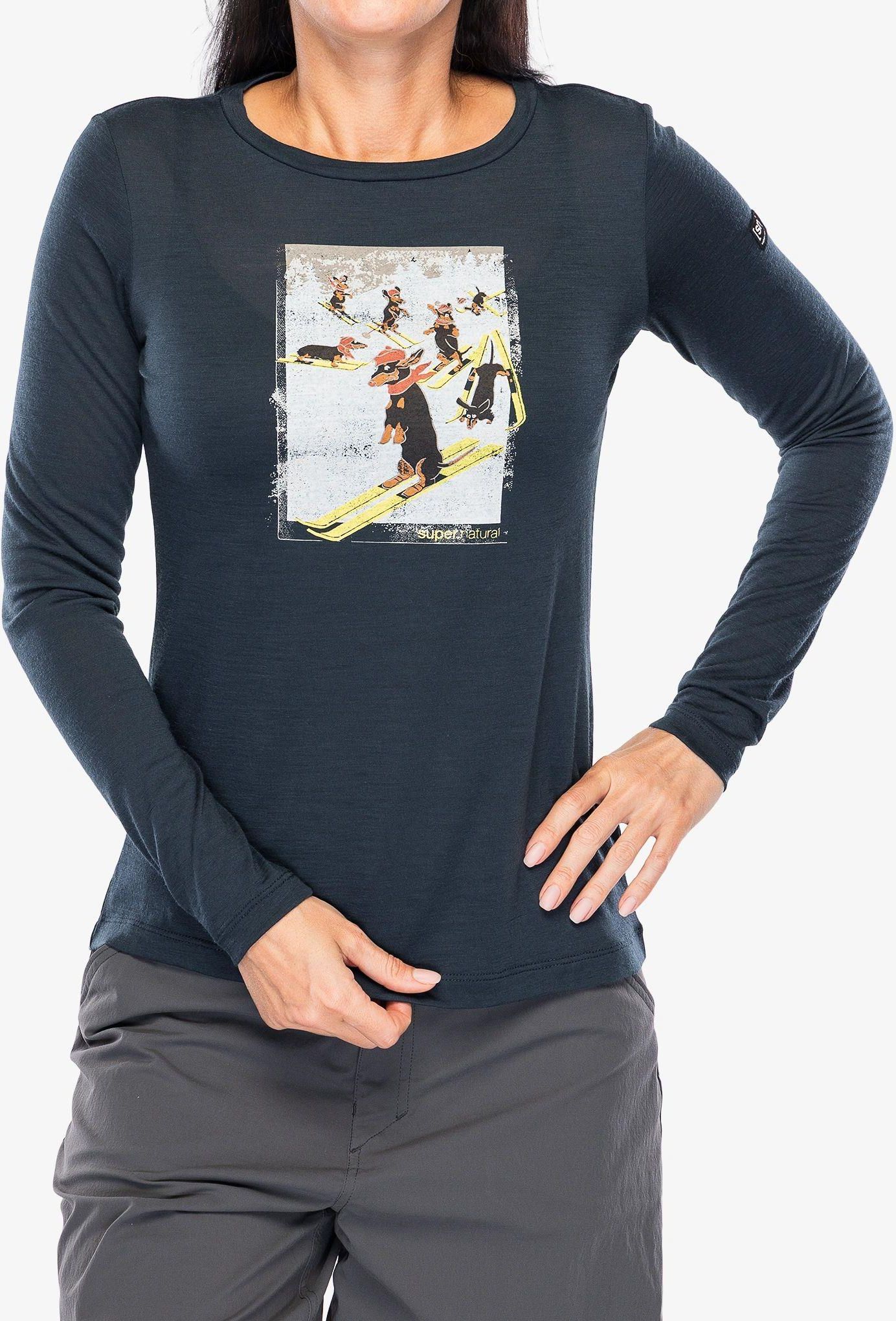 Bluzka damska z długim rękawem Super.natural Dachshund Party LS - blueberry/various Łabiszyn