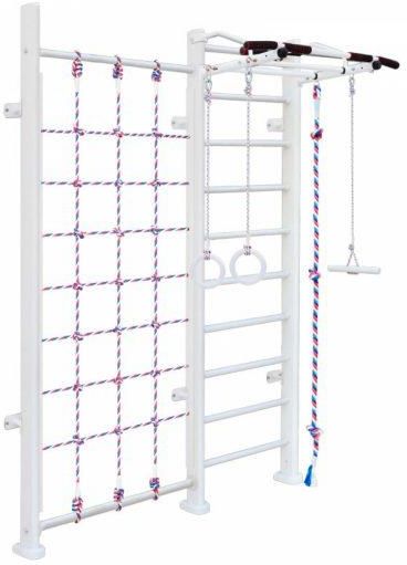 Drabinka gimnastyczna Adler Plus biała Najważniejsze cechy produktu zalecany jest dla dzieci powyżej 3 roku życia i dorosłych rozmaite akcesoria gimnastyczne dla dzieci w zestawie estetyczny wygląd, dopracowana w szczegółach konstrukcja wykonany z najwyższej jakości materiałów nieregulowana wysokość drążka Dane Techniczne sposób montażu: przyścienny wysokość: 243 cm wymiary zestawu: 70 cm (głębokość) x 174 cm (szerokość) szerokość drabinki: 64 cm rozpiętość uchwytów drążka: 96 cm dopuszczalne obciążenie drabinki: 100 kg dopuszczalne obciążenie akcesoriów: 50 kg wyposażenie: drążek nieprzesuwny, kółka, lina, słupek przyścienny z siatką, trapez Metalowe elementy zestawu (rękawki, drążek) Adler zawsze białego koloru Usługa montażu dostępna w całej Polsce O PRODUKCIE Drabinka gimnastyczna Adler Plus Drabinka gimnastyczna Adler Plus jest rozbudowanym zestawem gimnastycznym do ćwiczeń dla dzieci i dorosłych. Ona wykonana z drewna. Bogate wyposażenie sprawia, że drabinka do ćwiczeń zainteresuje każdego użytkownika. Biała ta drewniana kolorystyki dobrze pasują do współczesnego wnętrza. Szeroki wybór dodatkowych akcesoriów gimnastycznych W ofercie dostępny jest szeroki wybór akcesoriów gimnastycznych, którymi można urozmaicić zabawę dla dzieci i ćwiczenia dla dorosłych. W ofercie między innymi: kółka, trapez, lina gimnastyczna, drabinka linowa itd. W celu zapewnienia bezpieczeństwa podczas ćwiczeń zalecany jest zakup materaca gimnastycznego. DOSTĘPNA KOLORYSTYKA DRABINEK
