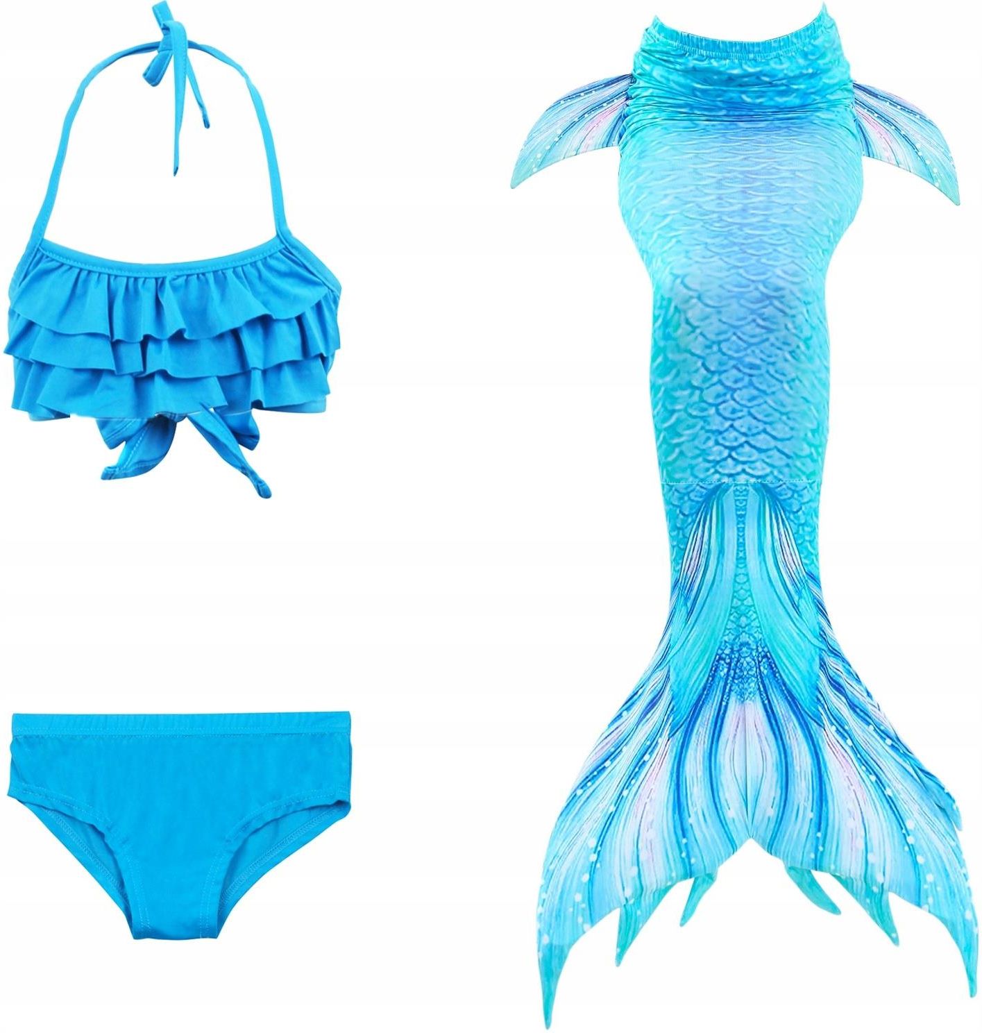 Strój kąpielowy Syrena MASTER Diana 140 cm - został zaprojektowany tak, aby dobrze przylegał do ciała podczas pływania. Jakość użytego materiału w połączeniu z nowo zaprojektowanym realistycznym designem nadaje kostiumowi wygląd prawdziwych, błyszczących łusek. Kostium składa się z klasycznej górnej i dolnej części kostiumu oraz imitacji ogona syreny. Może być również wykorzystywany do fotografii tematycznych. Ze względów bezpieczeństwa używaj kostiumu tylko w obecności osoby dorosłej. Chodząc po ziemi, podnieś dół kostiumu nad kostki. Kostium można zdjąć w wodzie, zsuwając.