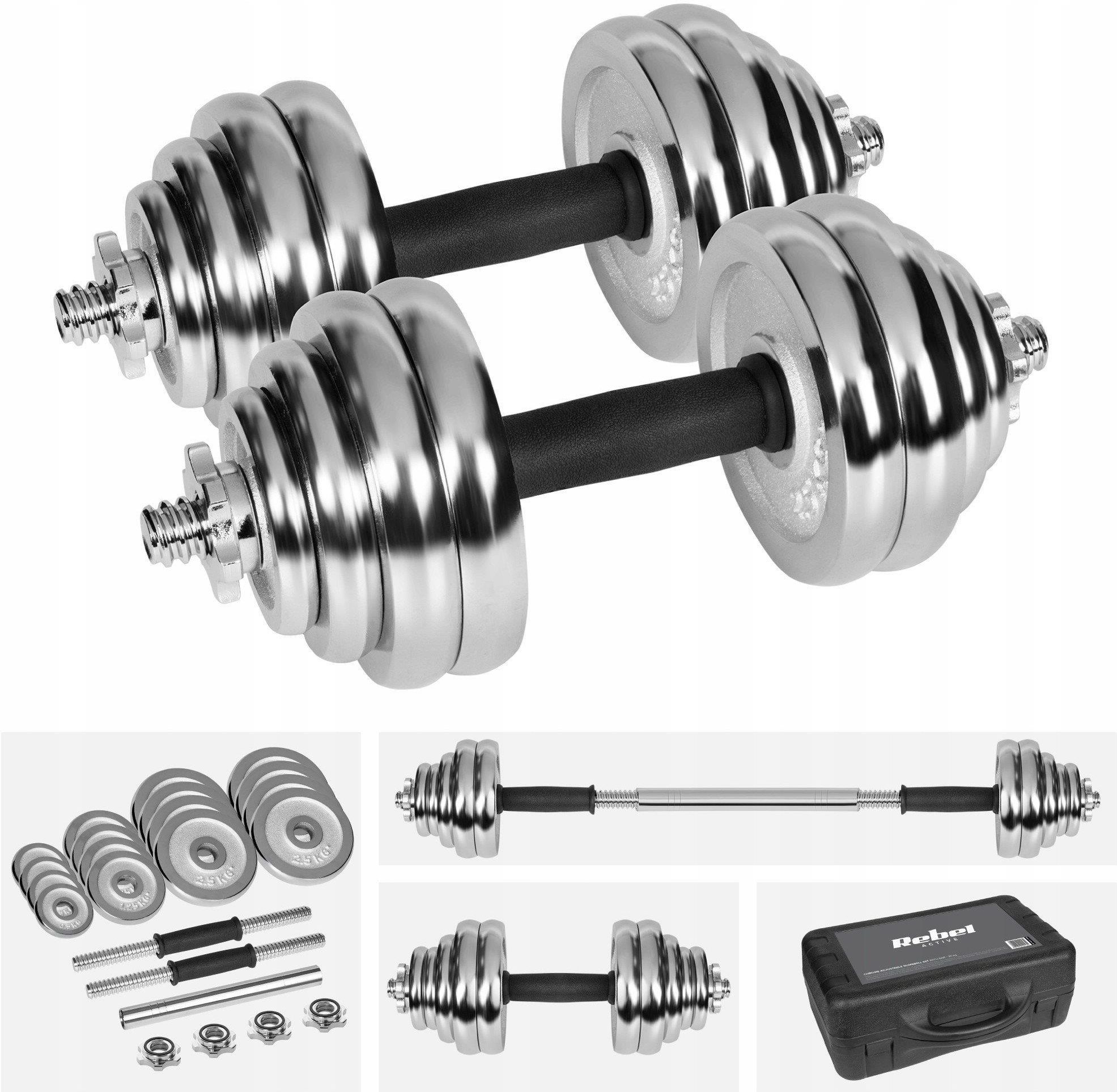 Rebel Active Hantle Żeliwne Chromowane Regulowane W Walizce Z Gryfem, Zestaw 30Kg Łabiszyn