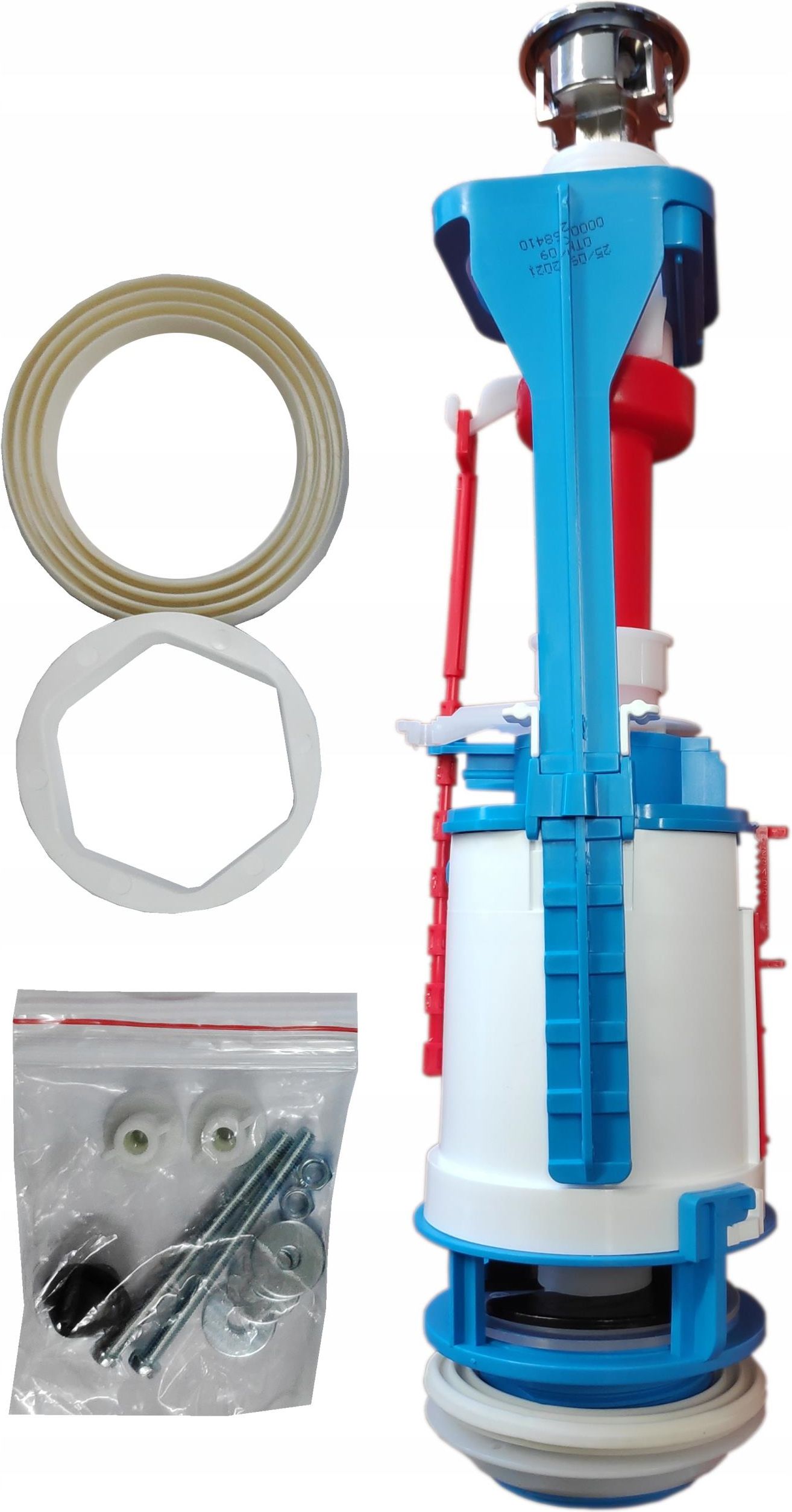 ZAWÓR SPUSTOWY DO SPŁUCZKI JEDNOFUNKCYJNY MOŻLIWOŚĆ SPŁUKIWANIA DOWOLNĄ ILOŚCIĄ WODY UNIWERSALNOŚĆ - możliwość regulacji wysokości zaworu i dostosowania do większości spłuczek na rynku. PROSTOTA INSTALACJI - zawór bez problemu wyregulujesz, nawet jeżeli nie masz doświadczenia w tej kwestii. WYSOKA JAKOŚĆ - zawór wyprodukowany z materiałów najwyższej jakości dzięki czemu zawór jest odporny na uszkodzenia mechaniczne. FUNKCJA STOP - ponowne naciśnięcie przycisku spowoduje zatrzymania spłukiwania wody. DODATKOWE WYPOSAŻENIE - wraz z zaworem otrzymują Państwo zestaw regeneracyjny do spłuczki. Ilość funkcji: JEDNA Materiał wykonania: Polipropylen Kolor: Biały/Niebieski Rozmiar: M58 Minimalny poziom napełnienia: 58 mm Zakres regulacji: 330-380 mm Wysokość: 365 mm Spłukiwanie: 3/6L W komplecie uszczelka pod zbiornik i śruby mocujące !!! DWIE ŚRUBY Z USZCZELKAMI, KTÓRE NALEŻY WYMIENIĆ PODCZAS ZDEJMOWANIA SPŁUCZKI. USZCZELKĘ PIANKOWĄ MIĘDZU SPŁUCZKĘ A MISĘ