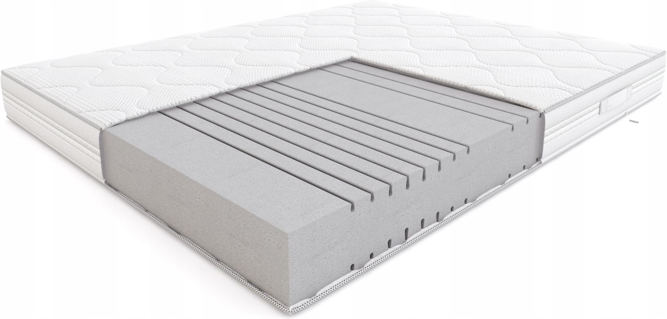 Materac piankowy FOXTROT HILDING twardy 100x220 Hilding Hilding Foxtrot Foxtrot to najtwardszy w kolekcji piankowy materac stworzony z myślą o osobach o wadze powyżej 80 kg oraz miłośnikach snu na twardszym podłożu. Wysokoelastyczna pianka wyprofilowana w 7 zróżnicowanych stref twardości gwarantuje doskonałe wsparcie poszczególnym partiom ciała niezależnie od pozycji. Jej otwartokomórkowa struktura zapewnia dobrą przewiewność i wentylację. Ma to pozytywny wpływ na trwałość całego wkładu oraz higienę snu. Posiada mniej jednolitą strukturę komórkową od standardowej pianki, dzięki czemu uzyskuje lepsze parametry podtrzymywania ciała, komfortu oraz sprężystości i elastyczności, dlatego Foxtrot dedykowany jest również osobom starszym. Do wyboru pokrowiec Hybrid zapewniający doskonałą wentylację lub Italiano z innowacyjną technologią Purotex ograniczającą rozwój bakterii i roztoczy. Wkład: profilowana pianka wysokoelastyczna HR o podwyższonej twardości, o wys. 18 cm Pokrowiec: Hybrid lub Italiano Wysokość: ok. 19 cm (Hybrid), ok. 20 cm (Italiano) Piktogramy: Dla osób cięższych; Dla seniorów; Dla par; Rolowany; Dla alergików; 7 stref twardości; Pralny w temp. 60; 15 lat gwarancji POKROWIEC ITALIANO Pokrowiec niezwykle przyjemny w dotyku, wykończony wysokiej jakości wiskozą. Puszysta dzianina o strefowym designie tworzy ciekawy i trójwymiarowy efekt. Mała waga i cztery wygodne uchwyty ułatwiają odwracanie materaca na drugą stronę. Pokrowiec zdejmowalny, pralny w temp. do 60°C. POKROWIEC HYBRID Niepikowany pokrowiec z dzianiny o bardzo wysokiej gramaturze z dodatkiem elastycznego stretchu gwarantuje doskonałą wentylację i jest odporny na mechacenie. Niewielka waga i dwa wygodne uchwyty ułatwiają odwracanie materaca na drugą stronę. Pokrowiec zdejmowalny, pralny w temp. do 60°C. ROZMIAR: 100x220 Hilding Foxtrot Foxtrot to najtwardszy w kolekcji piankowy materac stworzony z myślą o osobach o wadze powyżej 80 kg oraz miłośnikach snu na twardszym podłożu. Wkład: profilowana pianka wysokoelastyczna HR o podwyższonej twardości, o wys. 18 cm Pokrowiec: Hybrid lub Italiano Wysokość: ok. 19 cm (Hybrid), ok. 20 cm (Italiano)