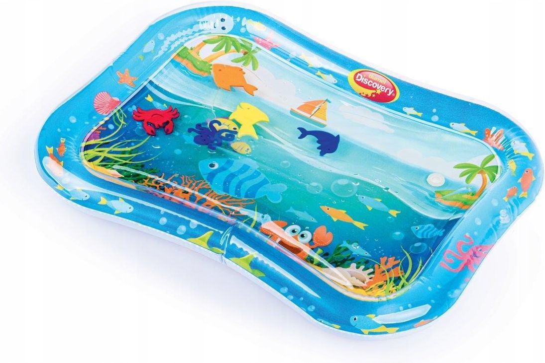 DUMEL DMUCHANA MATA WODNA Rozmiar 46x60 cm Nie zawiera w składzie BPA, ani innych toksycznych materiałów Atest CE 100% WYTRZYMAŁOŚCI I SZCZELNOŚCI Poznaj niesamowitą zabawkę sensoryczną, która łączy w sobie zabawę, naukę i rozwój. Mata wodna zapewni dziecku niezapomniane wrażenia z odczuwania ruchu wody oraz obserwowania pływających w niej kolorowych kształtów, nawiązujących do wodnych stworzeń. Matę zdobią przyjazne obrazki, które umilą najmłodszym zabawę. Krawędź wyposażona jest w ukryty zawór, służący do nadmuchania brzegu maty, natomiast na spodzie znajduje się zawór do napełnienia środkowej części maty wodą. Gdy dziecko położy się na środku maty lub przyciśnie go rączką, woda zafaluje, wprawiając w ruch kolorowe rybki. Aby mata mogła służyć jak najdłużej, należy napełniać ją wyłącznie wodą destylowaną i pamiętać o tym, aby po zakończonej zabawie wylać wodę, pozostawiając matę do wyschnięcia. Interaktywna powierzchnia z wodą i krążącymi elementami gdy dziecko położy się lub naciśnie dłonią, woda faluje, a kolorowe rybki wprawiają się w ruch — co działa hipnotyzująco i stymulująco Dwa zawory jeden do nadmuchania brzegu, drugi (na spodzie) do napełnienia środkowej części wodą, zapewniają łatwą i bezpieczną obsługę. Kolorowe rybki dryfują, gdy tylko dotknie je mała rączka — a delikatne przebywanie w kontakcie z wodą rozwija zmysły i koordynację. pływające elementy; zawór na spodzie do napełnienia wodą; zawór na brzegu do nadmuchania; matę należy napełniać TYLKO wodą destylowaną, a po zakończonej zabawie – wylać ją z maty; rozmiar maty po nadmuchaniu: ok. 46 × 60cm; Idealna do wczesnych miesięcy życia — stymuluje rozwój maluszka poprzez naturalne bodźce. Multisensoryczne doznania — zabawa, która uczy przez dotyk, ruch i wzrok. Łatwa w obsłudze i przechowywaniu — dmuchana konstrukcja i kompaktowy rozmiar. Bezpieczna i trwała — stworzona z myślą o najmłodszych użytkownikach.