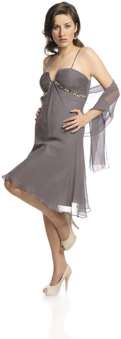 Fason: empire Dekolt przód: fantazyjny Plecy: odkryte częściowo Zapięcie: suwak kryty z boku Materiał: tkanina zwiewna, podszewka Długość całkowita: mini Rękaw: wąskie ramiączka Ozdoby: kamienie, dżety, koraliki Skład surowcowy: 100% jedwab
