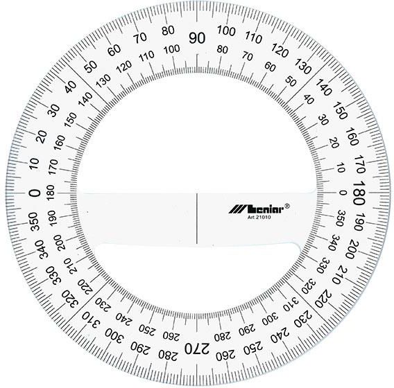 Leniar Kątomierz śr20cm/360o plastik opis produktu: Leniar kątomierz wykonany z prześroczystej plexi średnica 20cm nadrukowany kątomierz 0 -360 stopni podziałka co 1 stopień w dwóch kierunkach opakowanie: etui folia producent: Leniar