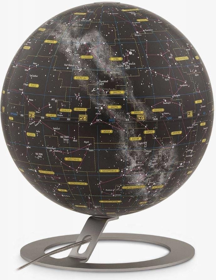 Globus Astralny z mapą nieba ORYGINALNY National Geographic kula 30cm Wyjątkowy globus, który czeka na Ciebie GLOBUS Globus nocnego Nieba Prezentujemy Państwu Globus National Geographic, który ukazuje nocne niebo na Ziemi. Na tej niezwykłej mapie globusa znajdują się zaznaczone gwiazdy, mgławice, konstelacje oraz gromady gwiazd. Jego nowoczesny projekt doskonale wpasuje się w wnętrza biur, salonów, a także będzie doskonałym pomysłem na prezent dla wszystkich miłośników gwiazd. Wyjątkowe detale Zapraszamy do zakupu tego wyjątkowego globusa, który pozwoli Państwu odkryć niezwykłe tajemnice kosmosu i cieszyć się jego pięknem w komfortowym środowisku domowym. Podświetlony może pełnić rolę niezwykłej lampki nocnej, przynoszącej sny pełne niezwykłych podróży i odkryć. Globusy sygnowane renomowanym logo „National Geographic” produkowane przez włoskiego producenta Tecnodidattica są odznaczają się wysoką jakością wykonania i perfekcją merytoryczną, cechami charakterystycznymi dla marki National Geographic. Globusy z logo „National Geographic” łączą zaawansowaną technologię Tecnodidattica z ponad 120-letnim doświadczeniem National Geographic. Podświetlany: tak Wydawca: National Geographic podstawa: aluminium Wielkość kuli / mm: 300 Wysokość / mm: 370 Zasilanie: 230V