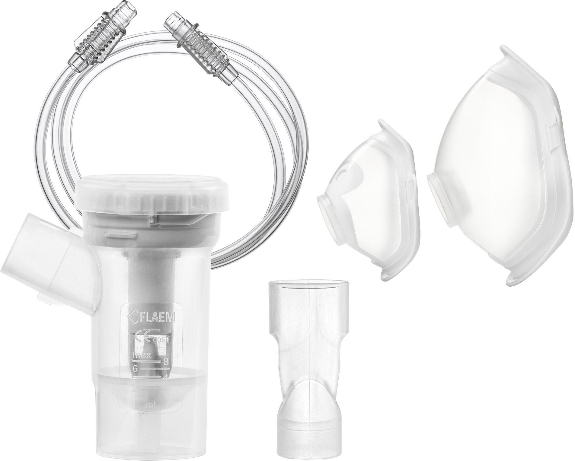 NOVAMA N Zestaw do nebulizacji z systemem oszczędzania leku, mała i duża maska Mała cząstka, do dolnych dróg oddechowych System oszczędzania leku „Drugsaver” Parametry przetestowane przez TÜV Rheinland S.R.L. Maski bez otworów, z zaworem antydyspersyjnym Wykonany bez bisfenolu i ftalanów Łatwy w czyszczeniu Higieniczna i łatwa w obsłudze inhalacja z Novama N RF8. Zestaw do nebulizacji który pozwoli na skuteczne wspomaganie leczenia dolnych dróg oddechowych dla całej rodziny. Zestaw jest bezpieczny i przetestowany - wykonany bez BPA i ftalanów, z parametrami przebadanymi przez TÜV Rheinland S.R.L., zgodnie z najnowszą normą EN ISO 27427. Nakładka „Drugsaver”, uniwersalny ustnik i szczelne maski pozwalają na efektywne i precyzyjne dotarcie leku. Z zestawem Novama N RF8 poprawisz parametry nebulizacji bez kupowania nowego inhalatora oraz wyposażysz się w akcesoria wykonane z bezpiecznych materiałów - bez BPA i ftalanów. Wysoką jakość wyrobu zapewnia Flaem, lider na światowym rynku nebulizacji, gwarantując efektywność każdej nebulizacji. System oszczędzania leku “Drugsaver” Efektywność kuracji jest dodatkowo zwiększona dzięki wykorzystanej nakładce na nebulizator „Drugsaver”, która redukuje rozproszenie leku, oszczędza mgiełkę oraz zabezpiecza twarz i oczy przed niepożądanym kontaktem z wziewnymi substancjami. Mała cząstka, do dolnych dróg oddechowych Nebulizator RF8 zapewnia stabilne parametry, pozwalające na skuteczną inhalację, dopasowaną do potrzeb domowników. Rozmiar cząstek (MMAD) wynosi 3,69 μm, umożliwiając dotarcie od oskrzelików, aż po pęcherzyki płucne, z frakcją respirabilną (FPF) na poziomie 63,9%, zapewniającą odpowiedni efekt terapeutyczny. Maski bez otworów z zaworem antydyspersyjnym Maski SoftTouch są wyjątkowo szczelne, z krawędzią wykonaną z dopasowującego się, biokompatybilnego materiału, który nie wywołuje nieprzyjemnego ucisku. Brak otworów bocznych sprawia, że nie tracisz cennego leku w otoczeniu.