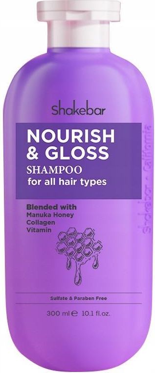 Szampon Nourish & Gloss został opracowany w celu uzyskania zdrowego, gładkiego i błyszczącego wyglądu włosów. Zawiera miód Manuka, kolagen i witaminy aby skutecznie nawilżyć włosy, ukoić i odżywić skórę głowy. Delikatnie i skutecznie myje od nasady aż po końce, pozostawiając włosy gładkie i super miękkie. Pasma włosów wyglądają zdrowo i lśnią naturalnym blaskiem. Sposób użycia: Nałóż porcję szamponu na zwilżone dłonie i rozprowadź na mokre włosy od nasady po końce. Wykonuj przy tym delikatny masaż skóry głowy do powstania piany. Następnie dokładnie spłucz, aby na skórze nie zostały resztki piany. W razie potrzeby czynność powtórz.Po umyciu zastosuj odżywkę Nourish & Gloss. Pojemność: 300 ml
