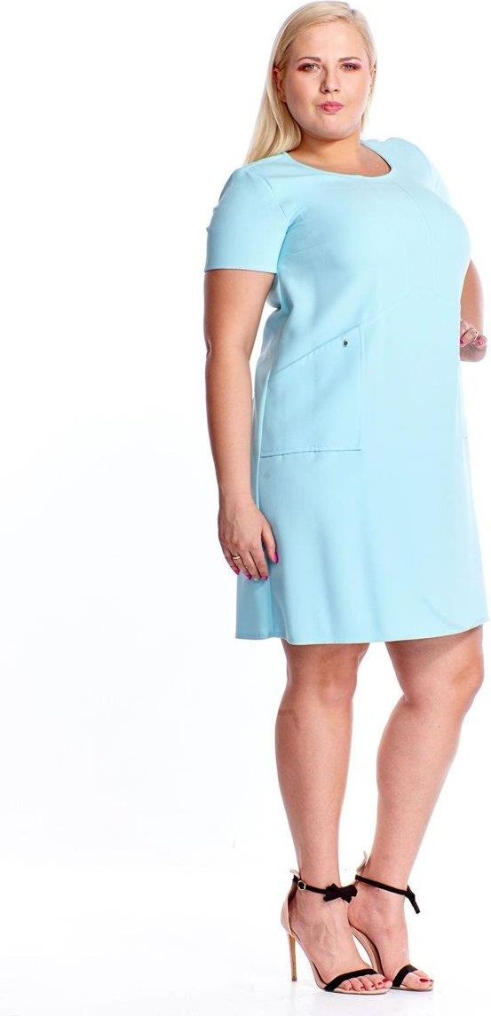 Sukienka w kształcie trapezu. Dopasowana jedynie w biuście, natomiast w pasie i biodrach luźna. Dekolt okrągły. Rękaw krótki. Zaszewki piersiowe modelujące biust. Przód oryginalnie zaprojektowany, cięcia zaakcentowane przeszyciami. W okolicy bioder naszyte duże kieszenie, podkreślone złotą przywieszką. Sukienka została uszyta z najwyższej jakości tkaniny. Jest bardzo przyjemna w dotyku. Nie ulega mechaceniu. Bez podszewki. Sukienka powstała z myślą o dziewczynach i kobietach w różnym wieku. Przeznaczona do noszenia na co dzień. Jeśli chcesz czuć się komfortowo i wyglądać elegancko, to ta sukienka jest właśnie dla Ciebie. Skład surowcowy: 69% poliester, 22% elastan, 9% bawełna. PRODUKT POLSKI kupując polskie marki wspierasz rozwój rodaków. Polska rośnie w siłę.