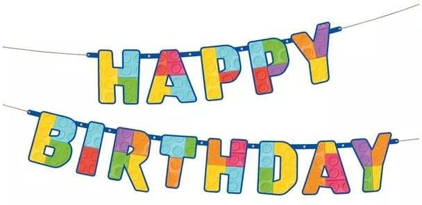Baner urodzinowy - Klocki - Block Party . Idealny do połączenia z innymi elementami dostępnymi w Naszym sklepie (kubki, serwetki, balony). Zestaw składa się z następujących elementów. Długość napisu: 180 cm Wysokość liter: śr. 16 cm Długość całkowita: 200 cm Do banera dołączona jest taśma z 11 …