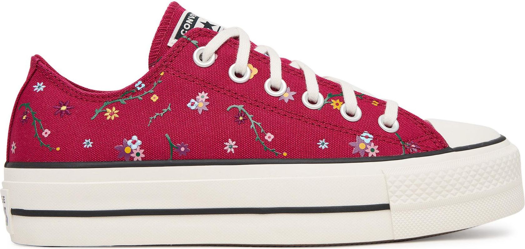 Converse Chuck Taylor All Star Lift Platform Embroidered Floral Patchwork A15535C Bordowy Łańcut