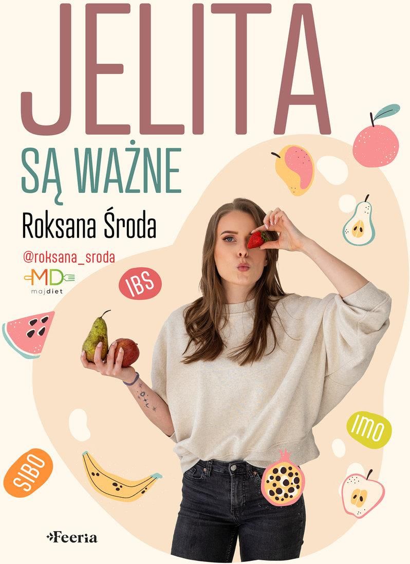 Jelita są ważne "Czy wiesz, że zdrowie twoich jelit ma ścisły związek z gospodarką hormonalną, kondycją mózgu, poziomem energii i samopoczuciem? Dzięki tej książce nie tylko zrozumiesz te zależności i dowiesz się, na co zwracać uwagę, by utrzymać zdrowie jelit i całego organizmu, lecz także poznasz metody leczenia najczęstszych zaburzeń przewodu pokarmowego i nauczysz się dbać o zdrowie w sposób holistyczny!Roksana Środa, dietetyczka kliniczna, założycielka popularnej marki MajDiet i influencerka, dzieli się z tobą swoją bezcenną wiedzą, która pozwoli ci:? zrozumieć naturę zaburzeń takich jak SIBO oraz IBS i poznać najskuteczniejsze metody leczenia,? zadbać o gospodarkę hormonalną i przeciwdziałać endometriozie, PCOS oraz zaburzeniom tarczycy,? lepiej rozumieć sygnały alarmowe, które wysyła ci ciało,? zapobiegać bólowi, wzdęciom i innym dolegliwościom układu pokarmowego,? wprowadzić zdrowe nawyki i zrównoważoną dietę bez rezygnowania z przyjemności,? utrzymać zdrowie jelit i cieszyć się pełnią życia.W poradniku znajdziesz zarówno rzetelne i przystępnie przedstawione informacje, jak i przepisy oraz inspirację do wprowadzenia pozytywnych zmian." "Czy wiesz, że zdrowie twoich jelit ma ścisły związek z gospodarką hormonalną, kondycją mózgu, poziomem energii i samopoczuciem? Dzięki tej książce nie tylko zrozumiesz te zależności i dowiesz się, na co zwracać uwagę, by utrzymać zdrowie jelit i całego organizmu, lecz także poznasz metody leczenia najczęstszych zaburzeń przewodu pokarmowego i nauczysz się dbać o zdrowie w sposób holistyczny!Roksana Środa, dietetyczka kliniczna, założycielka popularnej marki MajDiet i influencerka, dzieli się z tobą swoją bezcenną wiedzą, która pozwoli ci:? zrozumieć naturę zaburzeń takich jak SIBO oraz IBS i poznać najskuteczniejsze metody leczenia,? zadbać o gospodarkę hormonalną i przeciwdziałać endometriozie, PCOS oraz zaburzeniom tarczycy,? lepiej rozumieć sygnały alarmowe, które wysyła ci ciało,? zapobiegać bólowi, wzdęciom i innym dolegliwościom układu pokarmowego,? wprowadzić zdrowe nawyki i zrównoważoną dietę bez rezygnowania z przyjemności,? utrzymać zdrowie jelit i cieszyć się pełnią życia.W poradniku znajdziesz zarówno rzetelne i przystępnie przedstawione informacje, jak i przepisy oraz inspirację do wprowadzenia pozytywnych zmian."