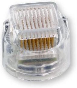 Kartridż jednorazowy do radiofrekwencji mikroigłowej. Kartridże inwazyjne do radiofrekwencji mikroigłowej, urządzenia RF Frakcyjny Mikroigłowy. Igły są izolowane, co pozwala na podanie fali radiowej na konkretnej głębokości (a nie na całej długości igieł), ustawionej na panelu głównym urządzenia. Podczas zabiegu radiofrekwencji bardzo cienkie mikroigły są wprowadzane pod skórę na różną głębokość (od 0.3 do 3 mm) i tu emitują fale radiowe, nagrzewając krótko, ale bardzo silnie tkankę wokół igieł bez przegrzewania powierzchni skóry i bez poparzeń. Po emisji fali igły natychmiast wycofują się ze skóry. Kartridż dzięki izolowanym igłom podaje falę radiową za pomocą 49 złotych pinów umieszczonych na końcu kartridża. Kartridż znajduje zastosowanie w przypadku liftingu skóry, redukcji blizn, rozstępów, a także w zwężaniu rozszerzonych ujść gruczołów łojowych. Igły w kartridżu wykonane ze stali chirurgicznej. Ilość pinów: 49 Średnica: 2 cm *Cena dotyczy 1 sztuki jednorazowego kartridża Zdjęcia poniżej przedstawiają rączkę do której pasują kartridże.