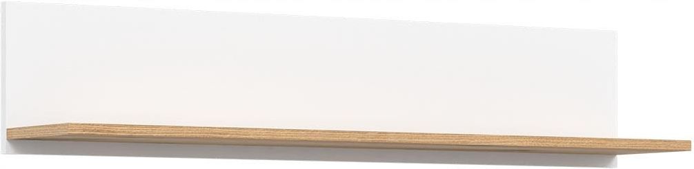 Półka wisząca ścienna na ścianę Biała REMI RM13 Półka wisząca REMI RM13 doskonale wkomponuje się w każdy typ pomieszczenia od salonu, poprzez gabinet aż do pokoju młodzieżowego. Oferowaną przestrzeń można wykorzystać do ekspozycji zbioru książek, rodzinnych pamiątek czy roślin doniczkowych. REMI RM13 charakteryzuje się lekkością i geometryczną prostotą dlatego mebel ten najlepiej łączy się z nowoczesnym wystrojem wnętrza. Na uwagę zasługuje ciekawe połączenie odcienia białego z naturalnym kolorem dębu evoke, który doskonale imituje rysunek usłojenia drewna. Biel dodaje pomieszczeniu świeżości, a także optycznie go powiększa. Model RM13 pochodzi z kolekcji REMI składającej się z 19 segmentów pozwalających umeblować dowolne pomieszczenie. Półka dostępna w czterech wariantach kolorystycznych. Mebel pakowany w częściach do samodzielnego montażu, wraz z czytelną instrukcją i akcesoriami montażowymi. Wymiary Szerokość: 107,5 cm Głębokość: 21,5 cm Wysokość: 22 cm Wykończenie Mebel został wykonany z wysokiej jakości płyty laminowanej, którą cechuje trwałość i odporność na czynniki mechaniczne oraz bezpieczeństwo użytkowania. Dodatkowym wzmocnieniem boków jest wytrzymałe obrzeże ABS. Wybarwienie Kolor korpusu: biały / dąb evoke Kolor frontu: biały / dąb evoke Fotografie