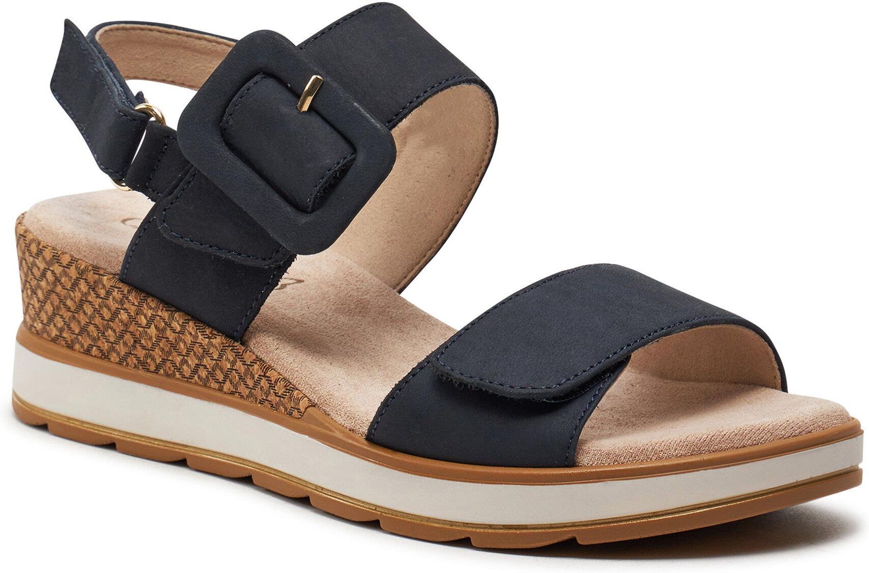 CAPRICE Sandały 9-28753-42 G, Ocean Nubuc, 41 EU Producent: Caprice Wyjątkowe sandały Caprice 9-28753-42 G, wykonane z wysokiej jakości skóry naturalnej i licowej. Swoje unikalne cechy zawdzięczają wysokości koturna 5,5 cm oraz technologii MEMOTION, która absorbuje wstrząsy i uderzenia w podłoże. …
