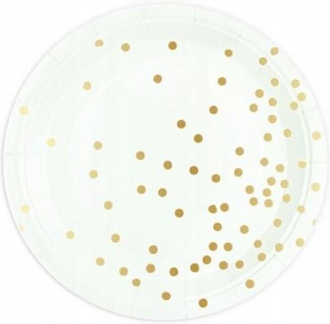 Talerzyki papierowe w kolorze białym, okrągłe w złote kropki. W opakowaniu znajduje się 6 sztuk talerzyków o średnicy 18 cm. Idealnie nadają się na przyjęcia w domowym zaciszu, aby dodać akcent elegancji. Dzięki tak pięknym talerzykom możesz uszczęśliwić przyjaciela i sprawić mu niesamowitą niespodziankę. Doskonale sprawdzają się na podanie wypieków, aby potem nie spieszyć się z myciem naczyń. Talerzyki papierowe to jednorazowe produkty stworzone z papieru, przeznaczone do użytku na imprezach i uroczystościach takich jak urodziny, wesela, spotkania rodzinne i inne okazje. Są one wygodne i łatwe w użyciu, a także przyjazne dla środowiska. Mogą być dostępne w różnych rozmiarach i kolorach, a także zdobić różne motywy i wzory, aby uzupełnić dekoracje uroczystości. Łatwość użycia: Nie trzeba ich myć ani przechowywać, po zakończeniu imprezy można je po prostu wyrzucić. Ekologiczne: Są one wyprodukowane z papieru, co oznacza, że są przyjazne dla środowiska w przeciwieństwie do talerzy plastikowych. Różnorodność: Dostępne są w różnych rozmiarach, kolorach i wzorach, co pozwala na dopasowanie ich do każdej okazji. Niska cena: Są one tańsze niż talerze ceramiczne lub plastikowe, co sprawia, że są to dobry wybór dla organizacji imprez na dużą skalę.