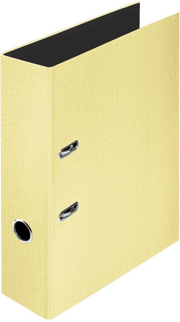Segregator biurowy A4 75mm Segregator A4 75 mm PasteLove – Pastelowy Żółty Wyjątkowy segregator w pastelowym żółtym odcieniu z kolekcji PasteLove to połączenie funkcjonalności i subtelnego stylu, idealne do przechowywania dokumentów w domu, szkole lub biurze. Solidna konstrukcja z tektury 2 mm – gwarantuje trwałość, odporność na zagniecenia i wygodne użytkowanie każdego dnia. Matowa folia ochronna z tworzywa PP – pokrycie z folii polipropylenowej zabezpiecza powierzchnię przed wilgocią i zabrudzeniami, a jednocześnie nadaje eleganckie, matowe wykończenie. Elegancka faktura kroko – okładka z tłoczeniem przypominającym skórę krokodyla dodaje klasycznego wyglądu i wyróżnia się na tle zwykłych segregatorów. Estetyczne czarne wnętrze – czarna papierowa wyklejka wewnątrz nie tylko wygląda elegancko, ale również maskuje ewentualne ślady użytkowania. Wydajny mechanizm dźwigniowy z dociskiem – umożliwia sprawne przechowywanie i porządkowanie dokumentów, nawet przy dużym obciążeniu. Szeroki grzbiet 75 mm – pomieści nawet do 500 kartek A4, co sprawia, że idealnie sprawdza się przy większych projektach i archiwizacji. Oczko na grzbiecie – ułatwia szybkie wyciąganie segregatora z półki, zwiększając komfort codziennego użytkowania. Pastelowy żółty kolor wnosi do wnętrza nutę optymizmu i świeżości, tworząc przyjemną atmosferę pracy i nauki. Jednostka Sprzedaży 1 sztuka Zobacz w naszym sklepie Allegro pozostałe kolory segregatorów rodzaje i rozmiary segregatorów