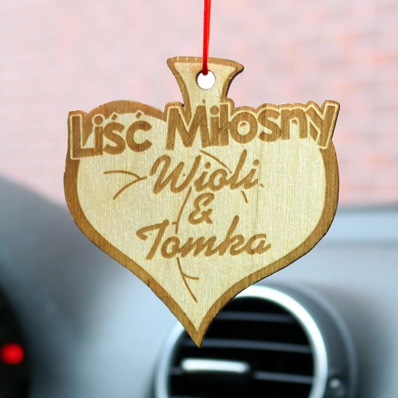 Zawieszka do samochodu z grawerem - Liść Miłosny Łańcut