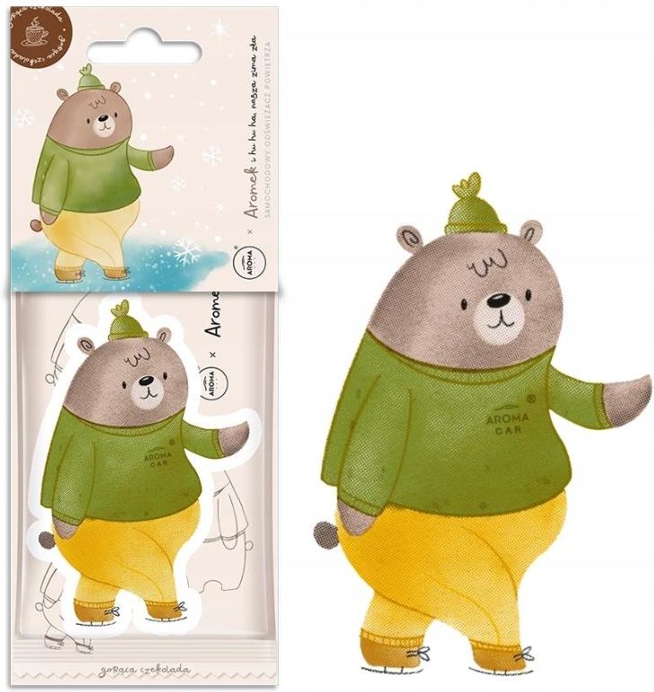 ZAPACH SAMOCHODOWY AROMA CAR XMASS AROMEK ZAPACH GORĄCA CZEKOLADA ZAWIESZKA Chłodny, jesienny lub zimowy wieczór? Rozgrzeje Cię zawieszka zapachowa Aromek o zapachu gorącej czekolady ! Niezwykle intensywny i realistyczny zapach, który będzie kusił nas nutami słodkiej czekolady, wanilii, cynamonu i kakao w towarzystwie naszego zapachowego przewodnika miśka Aromka to przepis na chłodne jesienno-zimowe dni. ✔️ ZAPACH: HOT CHOCOLATE - GORĄCA CZEKOLADA ✔️ Technologia: Celuloza - uwalnia aromat do 3 tygodni. Bo każdy moment jest wyjątkowy i każdy zasługuje na oryginalną oprawę i magiczny klimat… Sposób użycia ✅ Naciąć torebkę i wyjąć odświeżacz. Złożyć zgodnie z instrukcją obrazkową. Powiesić produkt swobodnie tak aby nie dotykał żadnych powierzchni. Indeks: AROM207A Producent: Aroma Car Co cechuje nasz produkt? Wysoka jakość wykonania oraz niska cena wyróżnia nas na tle konkurencji. Możesz być pewny, że otrzymasz towar w pełni wartościowy. Nuty zapachowe ✔️ Nuty głowy: Ciepłe mleko, cynamon ✔️ Nuty serca: Ciemna czekolada, orzech kokosowy, gorąca czekolada ✔️ Nuty bazy: Wanilia, cukier, krem mleczny To ekskluzywny produkt cenionej marki Aroma Home, oferującej wyroby perfumeryjne o wysokiej koncentracji zapachu dopieszczone przez mistrzów perfumerii.