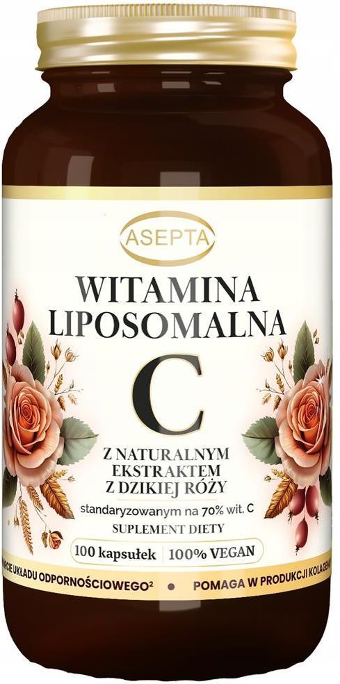 🌿 Witamina C 1000mg Liposomalna z Dziką Różą 100 kapsułek na Odporność Asepta 🌿 Liposomalna Witamina C z dziką różą to zaawansowany suplement, który łączy siłę natury z technologią przyszłości. Dzięki liposomalnej formie witaminy C oraz standaryzowanemu ekstraktowi z dzikiej róży, dostarczasz organizmowi 1000 mg witaminy C o wyjątkowej biodostępności. 🤔 Dlaczego warto 🤔 Hydrofilna z natury witamina C słabo wchłania się przez nabłonek jelitowy i łatwo ulega degradacji pod wpływem światła, temperatury czy pH. Dlatego nasza formuła łączy liposomalny kwas L-askorbinowy oraz standaryzowany ekstrakt z dzikiej róży (70% witaminy C), by zapewnić wyjątkową trwałość i biodostępność. 🔸 Liposomy – mikrokapsułki zbudowane z fosfolipidów – działają jak biologiczny nośnik, który chroni witaminę C przed utlenianiem i enzymami trawiennymi, zmniejsza ryzyko podrażnień żołądka nawet przy wysokich dawkach, umożliwia kontrolowane, skuteczne wchłanianie przez ściany jelit dzięki podobieństwu do błon komórkowych, zapewnia nawet o 30% wyższą biodostępność niż konwencjonalne formy. Delikatna dla żołądka – liposomy chronią układ pokarmowy przed podrażnieniem nawet przy wyższych dawkach. Naturalne źródło –Ekstrakt standaryzowany na 70% witaminy C, pochodzący z owoców dzikiej róży, dostarcza nie tylko witaminę C, ale także naturalne antyoksydanty wspierające zdrowie i witalność. Zaawansowana stabilność – technologia mikroenkapsulacji chroni witaminę C przed degradacją pod wpływem tlenu, światła i temperatury. 🌿 Wspaniałe składniki 🌿 👉🏻 Dzika róża (Rosa canina L.) Owoce tej rośliny to bogate źródło witaminy C oraz wielu innych naturalnych składników, które wspierają codzienną dietę na wielu poziomach. Witamina C zawarta w ekstraktcie przyczynia się do ochrony komórek przed stresem oksydacyjnym. Dodatkowo karotenoidy, takie jak beta-karoten i likopen, naturalnie występujące w owocach, wspierają zdrowy wygląd skóry,a kwasy organiczne pomagają utrzymać równowagę organizmu. 👉🏻 Witamina C liposomalna To nowoczesna forma witaminy C zamknięta w mikroskopijnych liposomach – kapsułkach z fosfolipidów, które chronią ją przed rozpadem w przewodzie pokarmowym. Dzięki temu lepiej się wchłania, dłużej działa i nie podrażnia żołądka. Badania kliniczne potwierdzają: biodostępność tej formy jest nawet o 30% wyższa niż zwykłej witaminy C. 👉🏻 Przechowywanie Przechowywać w temperaturze pokojowej w sposób niedostępny dla małych dzieci. Chronić przed światłem i wilgocią. Ostrzeżenia: Nie należy przekraczać zalecanej porcji do spożycia w ciągu dnia. Suplementy diety nie mogą być stosowane jako substytut (zamiennik) zróżnicowanej diety. Zrównoważony sposób żywienia oraz prowadzenie zdrowego trybu życia są ważne dla prawidłowego funkcjonowania organizmu. Nie stosować w przypadku nadwrażliwości na składniki produktu. Nie stosować u dzieci. . 👉🏻 Ostrzeżenia Produkt przeznaczony dla osób dorosłych. Nie należy przekraczać zalecanej dziennej porcji. Suplement diety nie może być stosowany jako substytut (zamiennik) zróżnicowanej diety. Zrównoważony sposób żywienia oraz prowadzenie zdrowego trybu życia są ważne dla prawidłowego funkcjonowania organizmu. Nie stosować u osób mających predyspozycje do tworzenia kamieni nerkowych lub chorujących na kamicę nerkową, nie stosować u małych dzieci, kobiet w ciąży i w trakcie laktacji 👉🏻 Stosowanie 🔸 2 kapsułki dziennie