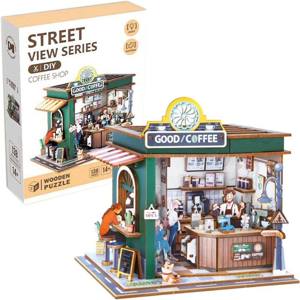 Askato Uliczny Zakątek Drewniane Puzzle 3D Kawiarenka Łapy