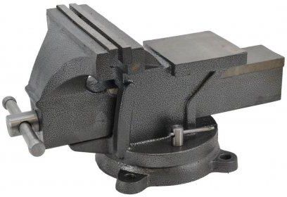 Wykonane z odpornego na uszkodzenia mechaniczne żeliwa szarego. Pokryte farbą proszkową do ochrony przed korozją. Podstawa obrotowa 360° z podwójnymi uchwytami blokującymi. Montowane bezpośrednio na stole warsztatowym. Wymienne, hartowane szczęki z wysokiej jakości stali. Zintegrowane kowadło. Śruba pociągowa umożliwia łatwe otwieranie/ zamykanie szczęk. Do ciężkich prac. Przeznaczone do mocowania materiału podczas obróbki mechanicznej. Dane techniczne: Szerokość szczęk: 4``/ 100mm Wymiary: 270 x 145 x 165mm Waga: 5,500kg EAN: 5903041036968