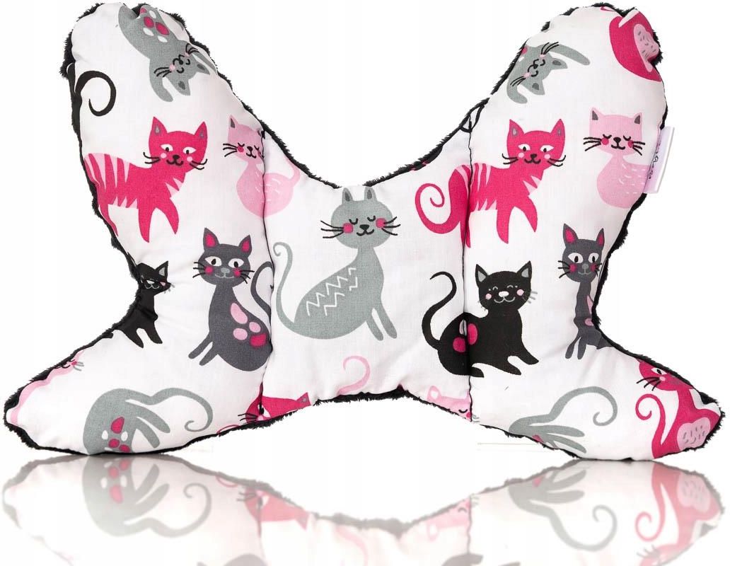 Poduszka antywstrząsowa podróżna motylek Bajbi Cechy produktu : Poduszka idealna od pierwszych dni życia maluszka. Jej kształt pozwala zabezpieczyć głowę dziecka przed mikrowstrząsami podczas jazdy wózkiem oraz samochodem. Doskonale dopasowuje się zapewniając spokojny sen i komfort podczas podróży. Świetnie sprawdza się nawet w domu. Silikonowe wypełnienie (antyalergiczne) jest w pełni bezpieczne dla dziecka. Polecane dla dzieci od urodzenia do około 1 roku życia. Każdy produkt jest szyty pod zamówienie, dajemy sobie dwa dni robocze na realizację, ale w miarę możliwości staramy się by było to poniżej 24 h mając na uwadze to, że często zamówienia są pilnie potrzebne :) Model : przód koty różowe / tył czarne minky (zdjęcie poglądowe wzór na produkcie może się ułożyć inaczej) Wymiary : około 20x30 cm jest to według nas najlepszy, najwygodniejszy rozmiar Rozmiar : od pierwszych dni do ok roku Skład : 100% bawełna 100% poliester minky wypełnienie poliestrowa kulka silikonowa antyalergiczna Pranie : Prać w temperaturze 40 st. C Nie wirować Nie prasować po stronie polaru minky Nie suszyć w suszarce bębnowej Wypełnienie antyalergiczne - miękka, puszysta kulka silikonowa zapewniająca komfort podróżowania i możliwość prania poduszek w pralce Polecamy w zestawie z nakładkami na pasy. Zobacz pozostałe produkty z tej serii. Produkt Polski z małej manufaktury na poddaszu. Kupując ten produkt wspierasz polską firmę, która wkłada w to całe serce. Dziękuję