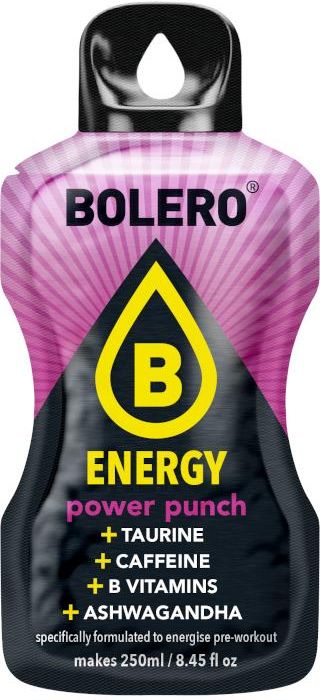 BOLERO 14G 6SZT ENERGY POWER PUNCH - PROSZEK DO PRZYGOTOWANIA NAPOJU Z NATURALNĄ KOFEINĄ I SUPLEMENTAMI NIE ZAWIERA CUKRU WYSOKA ZAWARTOŚĆ KOFEINY (32MG/ 100ML) NIE ZALECA SIĘ STOSOWANIA U DZIECI, KOBIET W CIĄŻY I KOBIET KARMIĄCYCH PIERSIĄ WZBOGACONA FORMUŁA BOLERO ENERGY POWER PUNCH Ashwagandha …